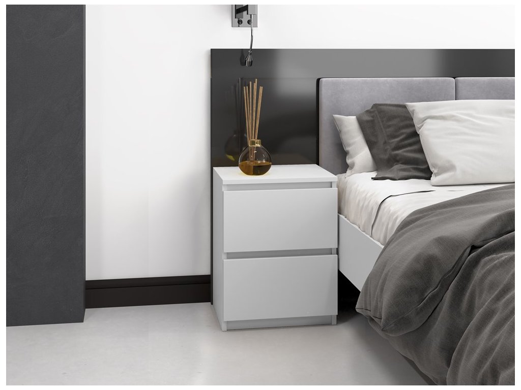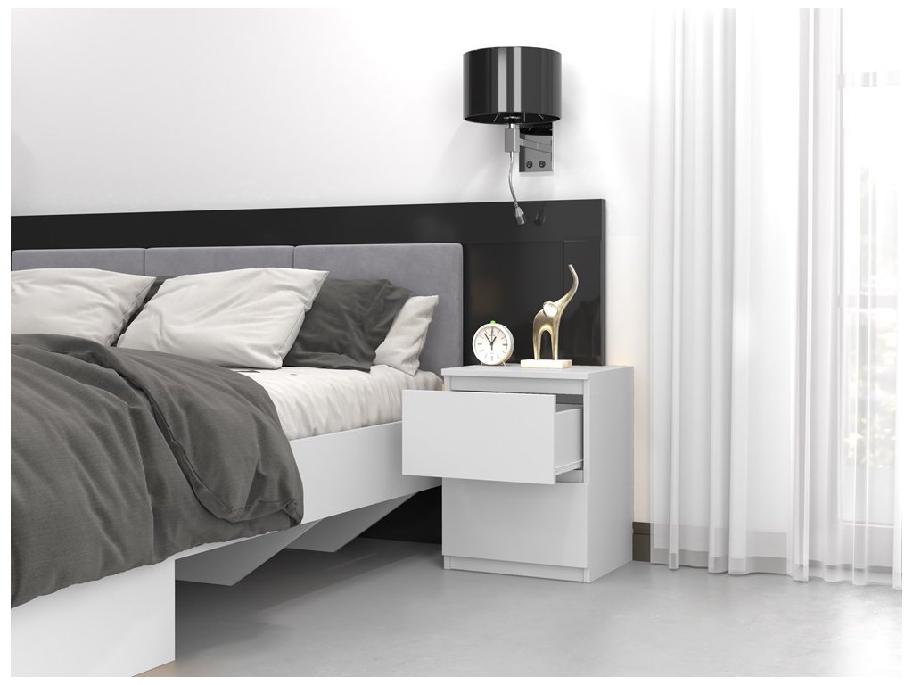 Moderní noční stolek 2W Vám skvěle zapadne do Vaší ložnice. Stolek má dva šuplíky, kde si opravdu odložíte vše co potřebujete. Je vyroben z kvalitní LTD desky, která je nenáročná na údržbu a hrany má chráněno ABS páskou. Stolek má bezúchytový systém otevírání, takže vám v prostoru nebudou zavazovat žádné úchyty a zároveň to posílí jeho moderní design.