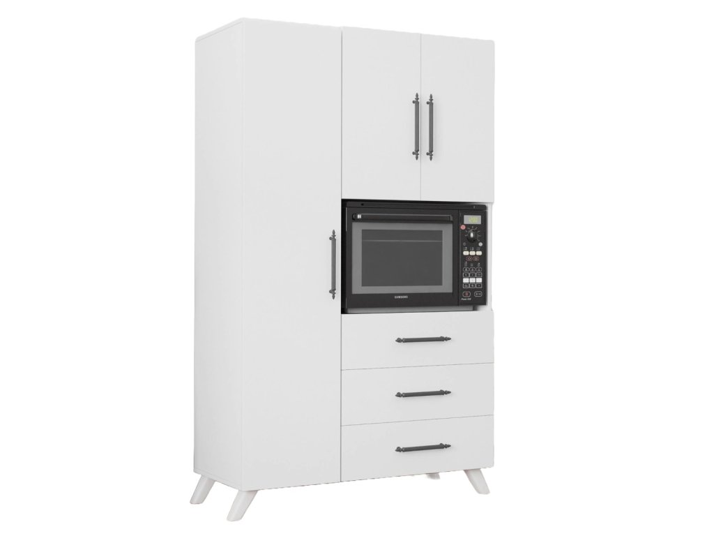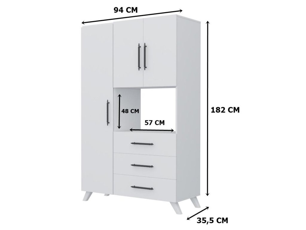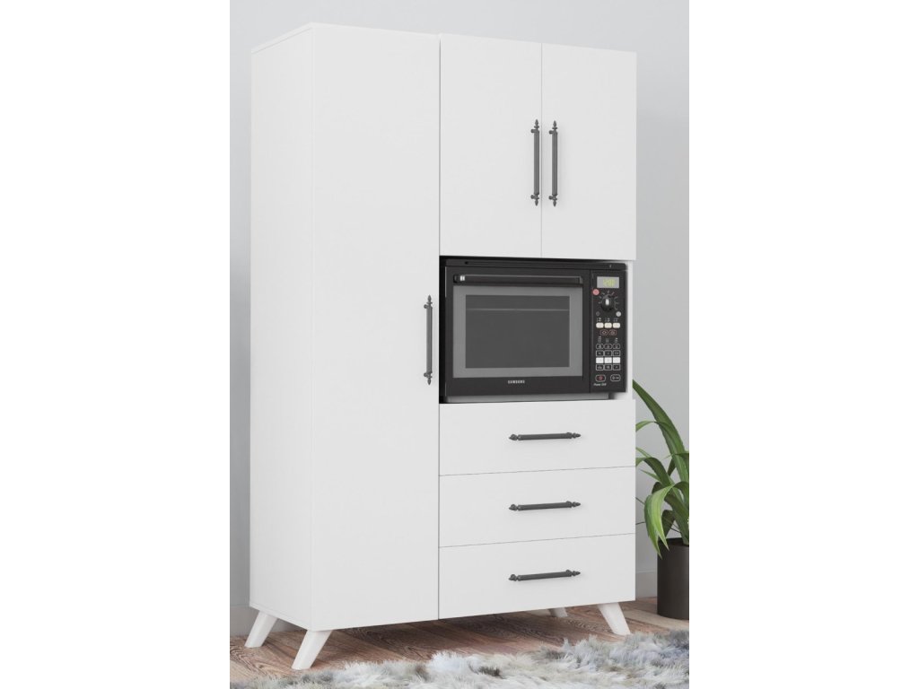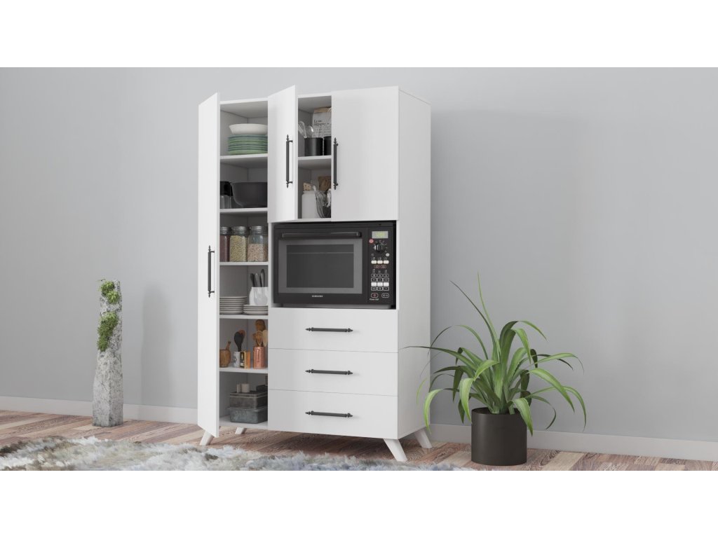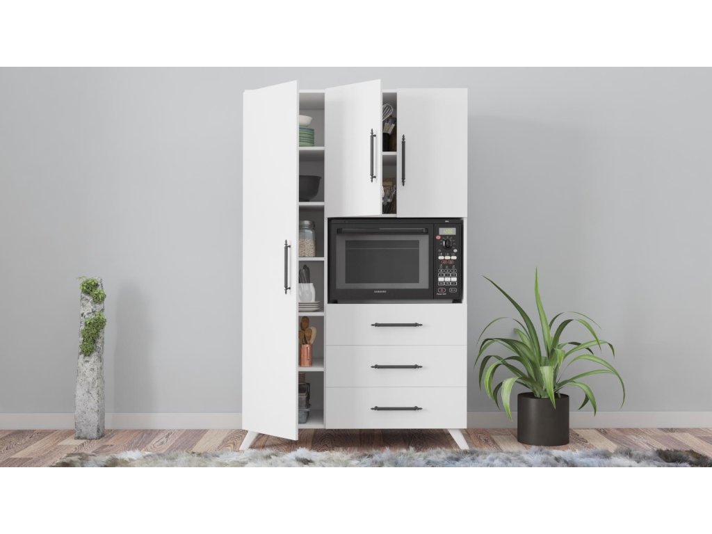 Skříň ADELINE disponuje 3 dvířky, 3 šuplíky a speciálním prostorem pro mikrovlnku, což zvyšuje její praktičnost. Také disponuje 5 prostornými poličkami. Stojí na elegantních nožkách, což usnadňuje údržbu podlahy pod ní. Vyrobena z kvalitní dřevotřísky potažené melaminem, multifunkční skříň ADELINE zaručuje dlouhou životnost a snadnou údržbu.