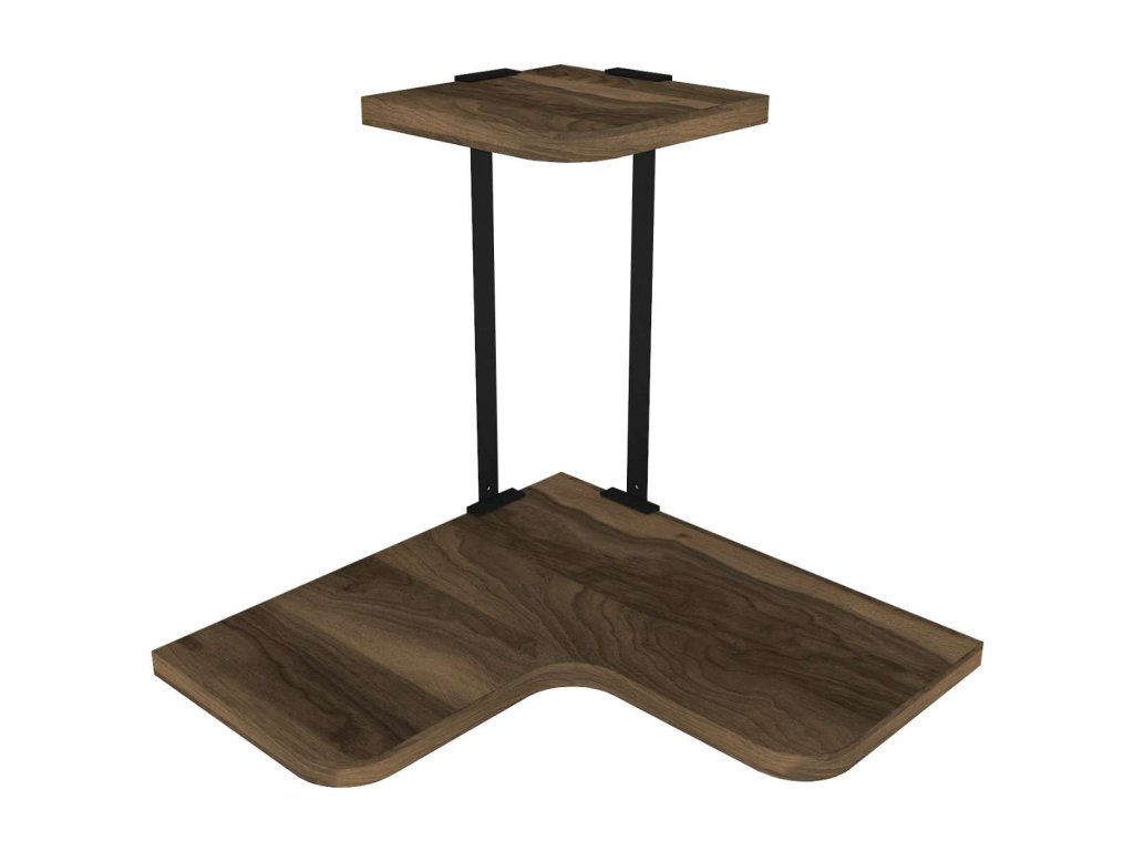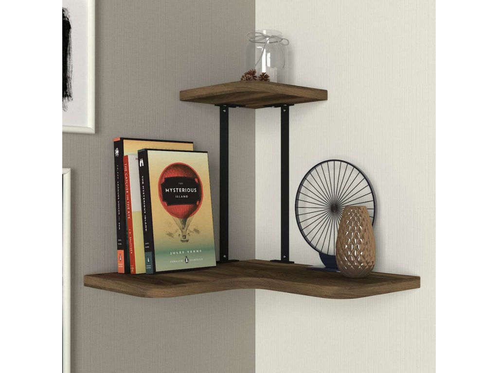 Rohová nástěnná police AGRO kombinuje kvalitní LTD materiál s pevnými kovovými prvky, což jí dodává robustnost a dlouhou životnost. Ořechová barva a industriální styl přinášejí do vašeho domova moderní a stylový vzhled. Díky svému atypickému tvaru police AGRO dokonale využívá roh místnosti a poskytuje dostatek prostoru pro vaše dekorace nebo knihy.