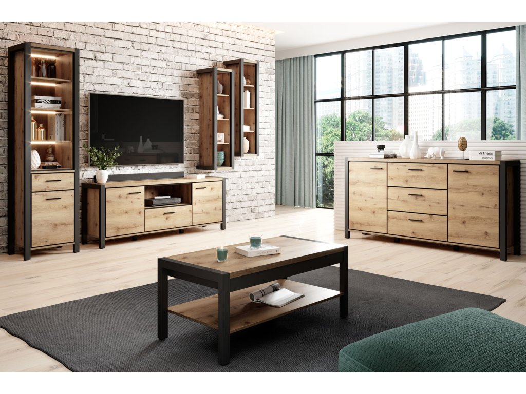 Sektor AKTUAL vám skvěle zapadne do každého interiéru. Kombinace přírodního dubu Taurus s matnými černými prvky zaujme na první pohled. Hrany jsou zakončeny ABS lištou. Sektor obsahuje různé druhy nábytku ze kterých si můžete vyskládat obývací pokoj přesně podle Vašich představ.