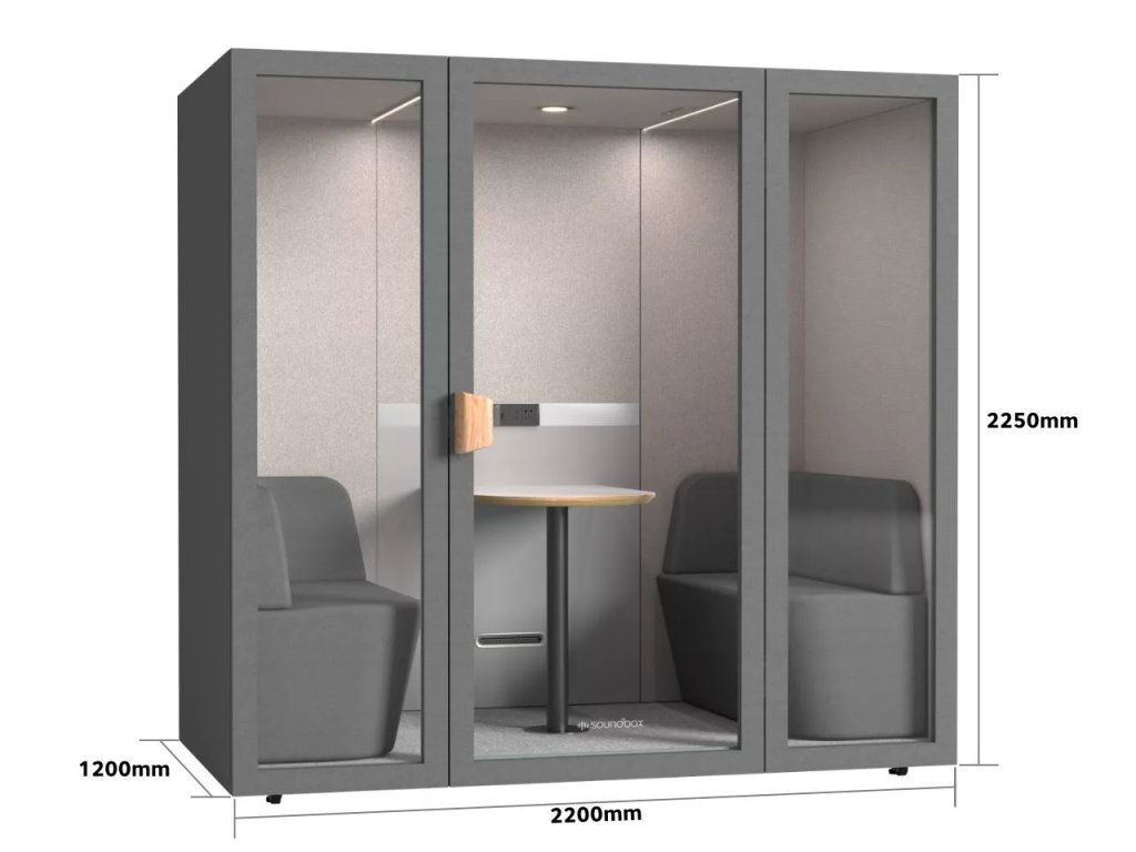 Akustická zvukotěsná kabina je určena pro telefonní hovory, online schůzky, obchodní jednání nebo menší školení v prostředí open space kanceláří, úřadů, hotelů, letišť nebo univerzit. Poskytuje uzavřený prostor se sníženou hlučností, který omezuje rušení okolí i vnější hluk.
