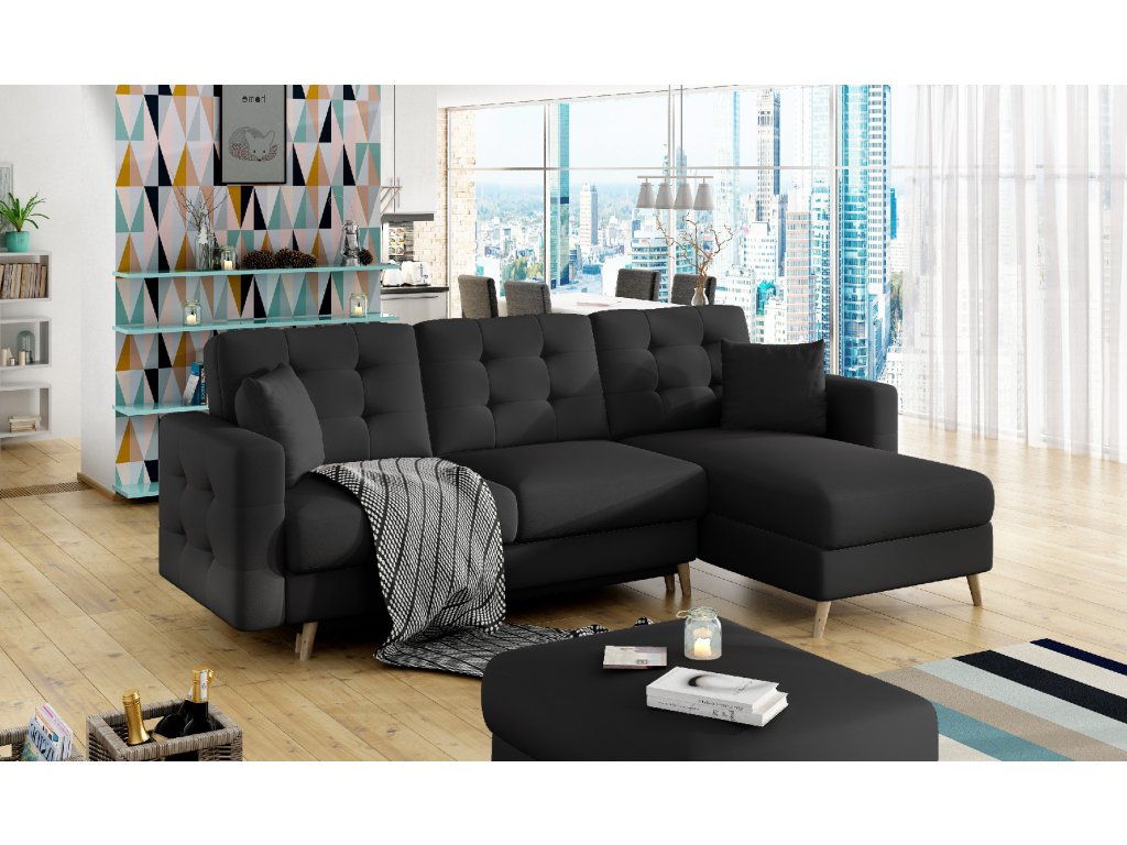 ALADAR L je elegantní rozkládací rohová sedačka, která zaujme i náročnější zákazníky. Sedačka vám nabízí funkci rozkladu a úložný prostor na ložní prádlo. Je čalouněná i ze zadní strany, proto ji můžete umístit do prostoru. Čalounění sedačky je na bocích a opěradlech elegantně prošívané. K sedačce patří také dva okrasné polštáře na obrázku. Konstrukci sedací soupravy tvoří masivní dřevo v kombinaci s dřevotřískou. Vyplněná je kvalitní PUR pěnou a vlnovcovými pružinami, které zajišťují to nejlepší pohodlí. Sedačka je univerzální, takže si ji smontujete přímo na místě podle vašich představ. Výška sedáku 45 cm. Hloubka sedáku: 52/75 cm. Spací plocha: 210 x 120 cm. Je vhodná pro příležitostné spaní. Ostatní rozměry naleznete na obrázku.Doplňkové parametry