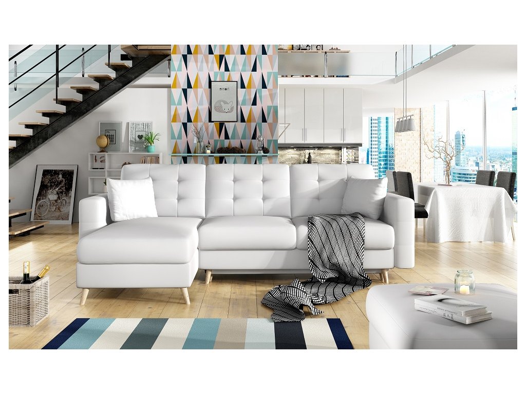 ALADAR L je elegantní rozkládací rohová sedačka, která zaujme i náročnější zákazníky. Sedačka vám nabízí funkci rozkladu a úložný prostor na ložní prádlo. Je čalouněná i ze zadní strany, proto ji můžete umístit do prostoru. Čalounění sedačky je na bocích a opěradlech elegantně prošívané. K sedačce patří také dva okrasné polštáře na obrázku. Konstrukci sedací soupravy tvoří masivní dřevo v kombinaci s dřevotřískou. Vyplněná je kvalitní PUR pěnou a vlnovcovými pružinami, které zajišťují to nejlepší pohodlí. Sedačka je univerzální, takže si ji smontujete přímo na místě podle vašich představ. Výška sedáku 45 cm. Hloubka sedáku: 52/75 cm. Spací plocha: 210 x 120 cm. Je vhodná pro příležitostné spaní. Ostatní rozměry naleznete na obrázku.Doplňkové parametry