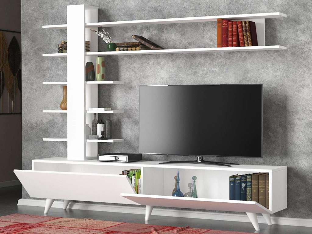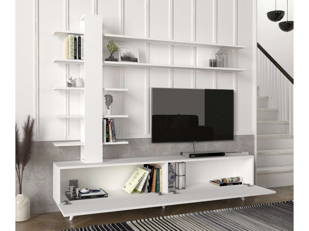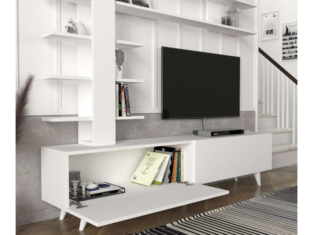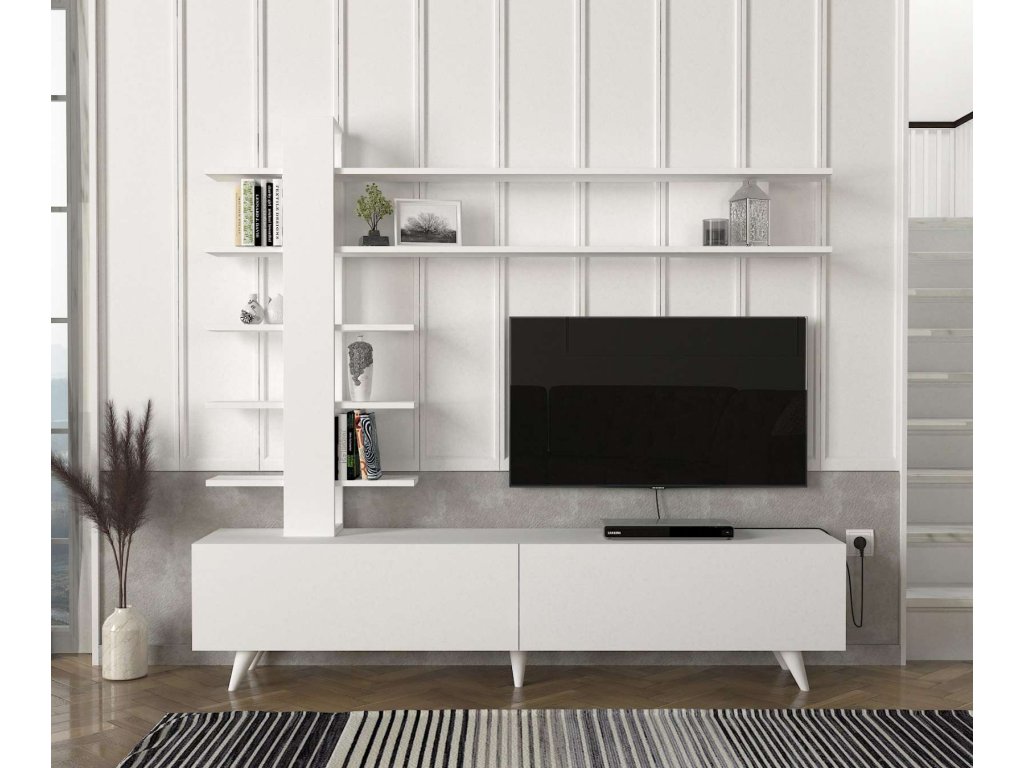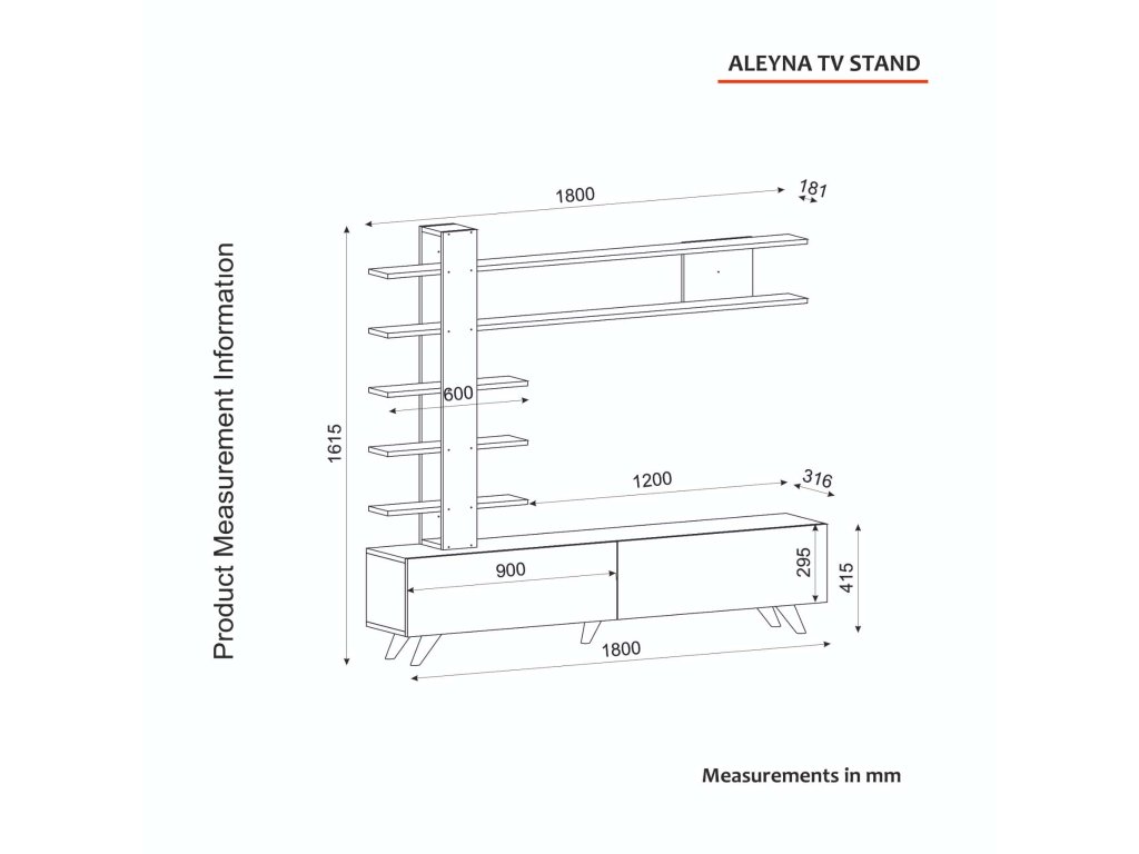 - Rozměry: 180 x 161.5 x 31.6 cm, poskytuje prostorný úložný prostor pro vaši televizi a další multimediální zařízení.