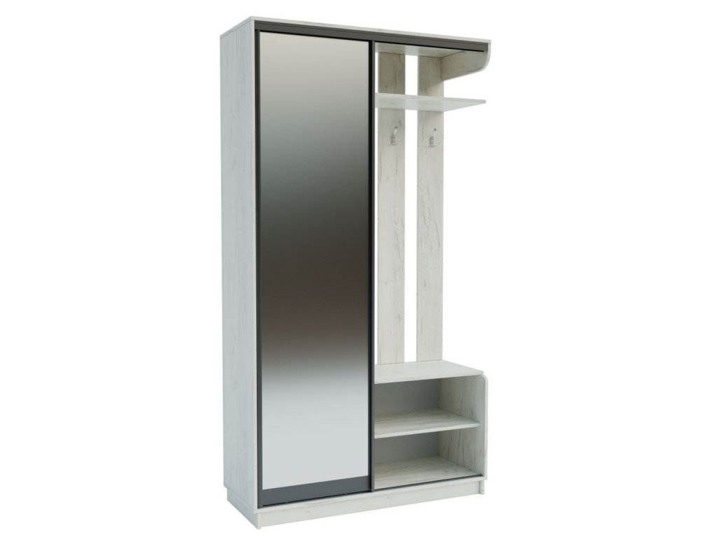 Dveře jsou se zrcadlem. Skříň je efektně propojena s úchyty a kováním. Výjimečnost skříně je v její netypické výšce až 220 cm, čímž se zajistí větší úložný prostor. Rozměry úložných částí si můžete prohlédnout na fotce. Skříň je členěna na policovou a závěsnou část s 1 závěsnou tyčí. Korpus skříně je vyroben z kvalitní LTD desky. Skříň je v nabídce v pravém provedení, to známá zrcadlo na pravé straně.