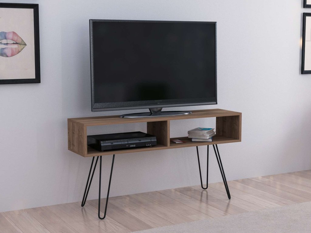 TV stolek ALINA je skvělou volbou pro ty, kteří hledají moderní a funkční nábytek s elegantním vzhledem. Jeho kombinace ořechového dřeva a kovových prvků přináší do vašeho domova sofistikovaný styl a praktičnost.