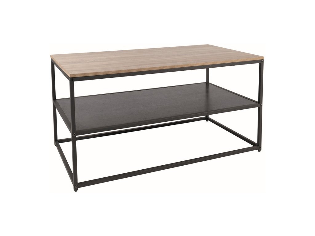 Stolek je vyroben z MDF desky v kombinaci s melaminem, která je nenáročná na údržbu. Barva: dub. Konstrukce je kovová v černé barvě.