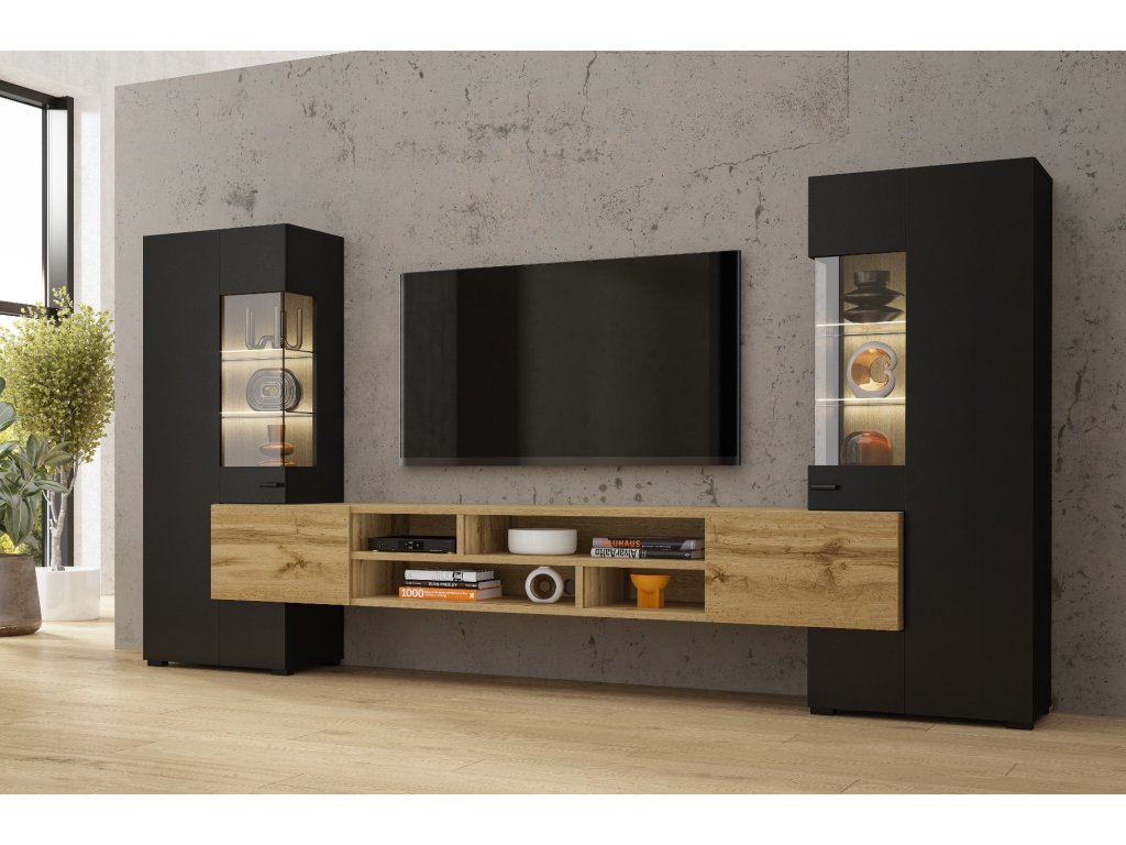 ANDY obývací stěna, černý Onyx/dub Wotan
