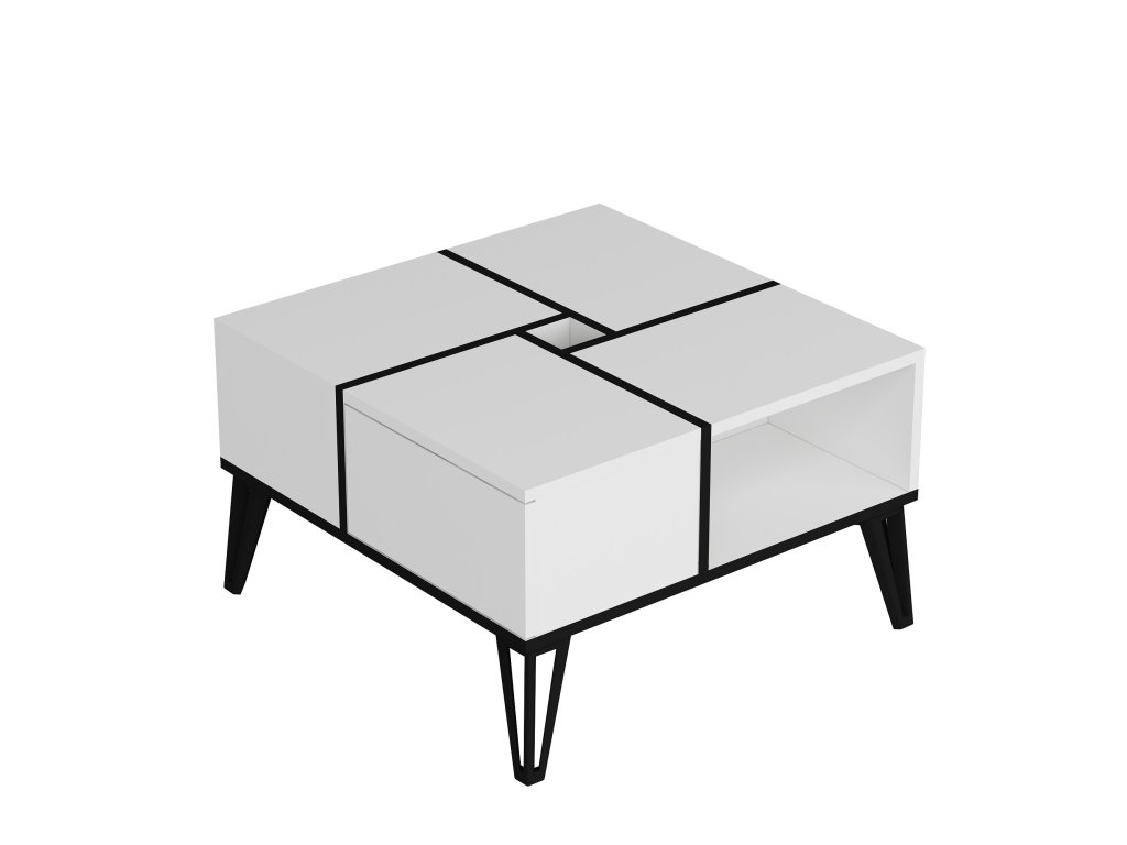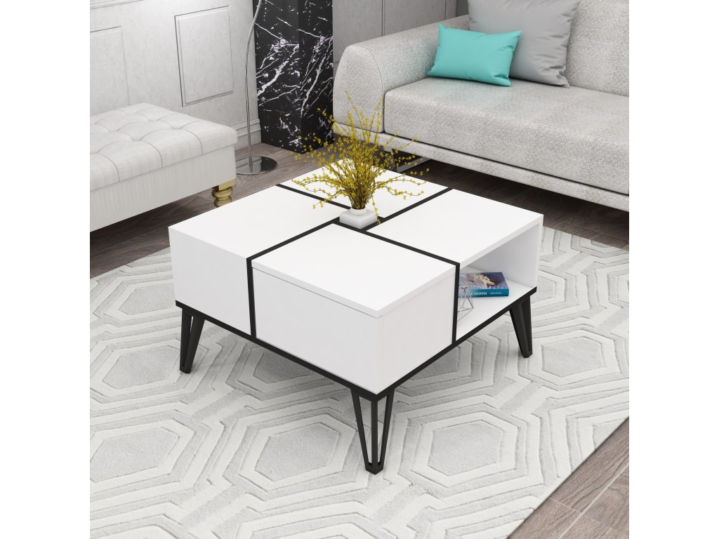 Kombinace bílé a černé barvy vytváří nadčasový a elegantní vzhled, který se bez problémů hodí k jakémukoli stávajícímu nábytku a dekoraci. Čisté linie a minimalistický design tohoto konferenčního stolku z něj činí všestranný kus nábytku, který doplní různé styly interiéru, od moderního až po tradiční.