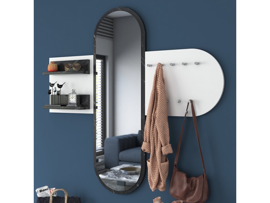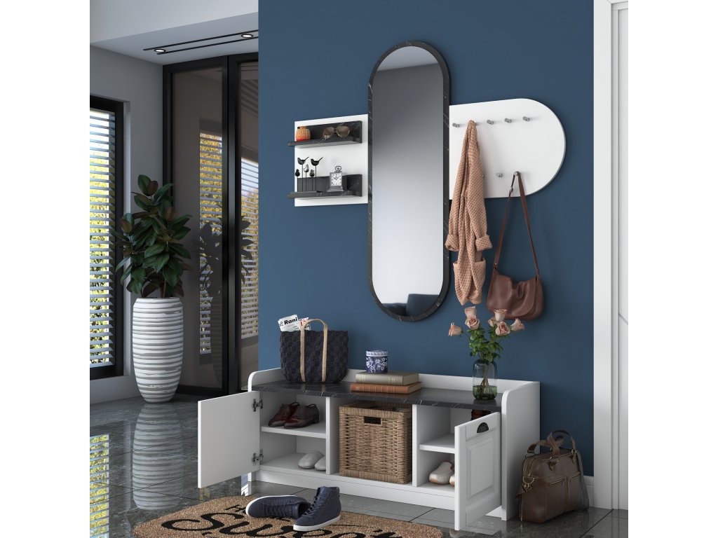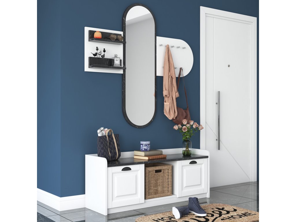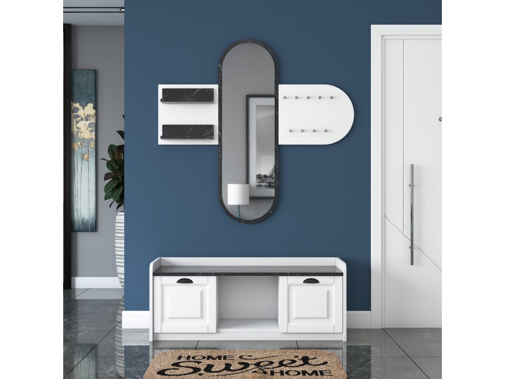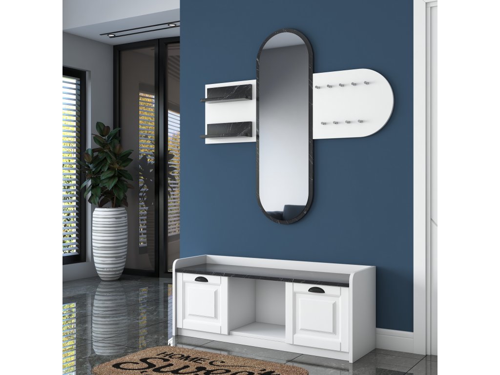 ANTHONY předsíňová stěna se zrcadlem, bílá/mramor