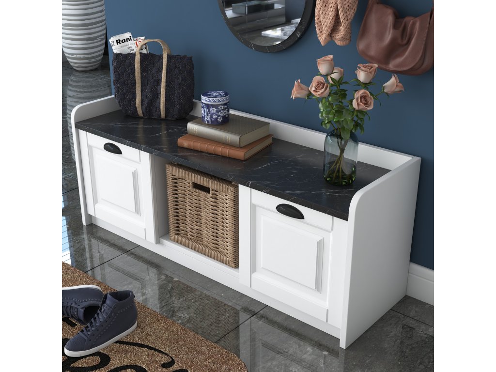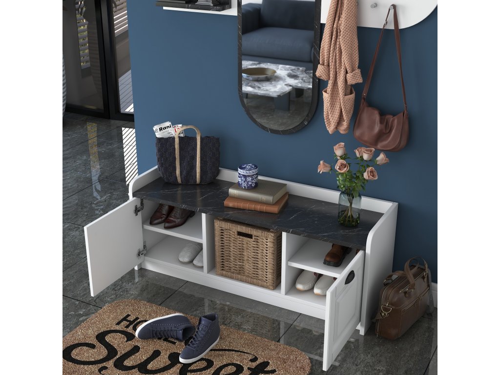 Sestava ANTHONY přináší styl, eleganci a praktické řešení pro vaši předsíň. Je navržena v luxusním provedení s kombinací bílé barvy a ořechového dekoru, což dodá vašemu vstupnímu prostoru sofistikovaný vzhled. Kvalitní membránová MDF dvířka podtrhují její prémiový charakter.