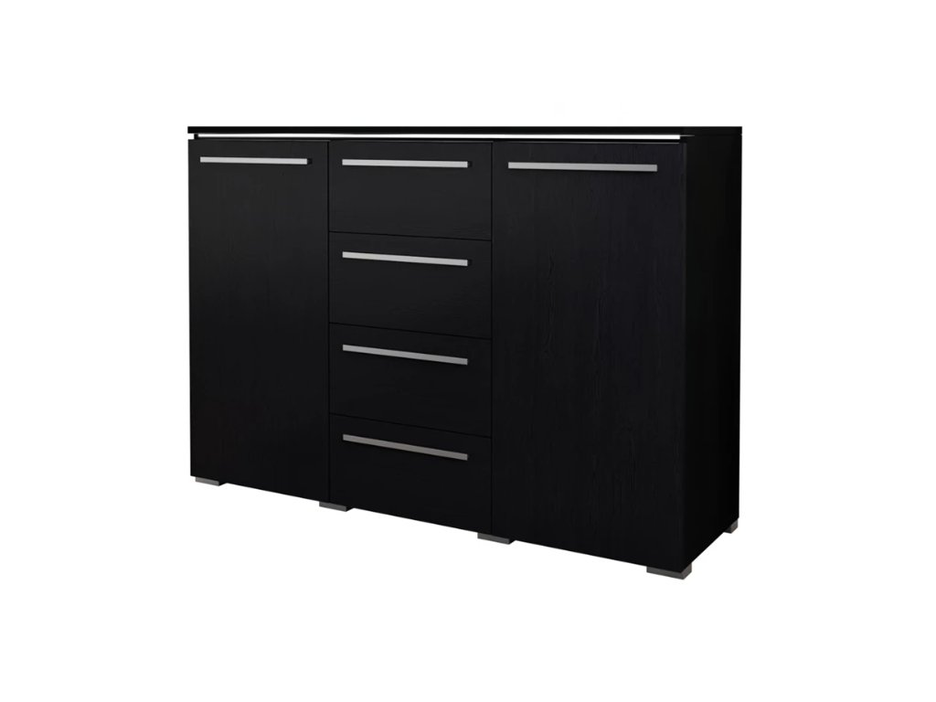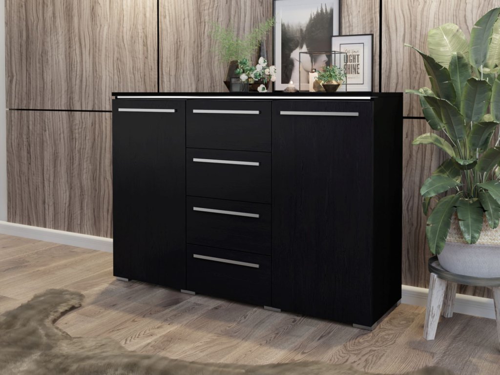 Komoda ANTILA je vyrobena z kvalitních LTD desek o tloušťce 16 mm, které se snadno udržují. Komoda je vybevaná dlouhými úchyty, které přitahují pozornost. Úchyty jsou plastové, ve stříbrné barvě.