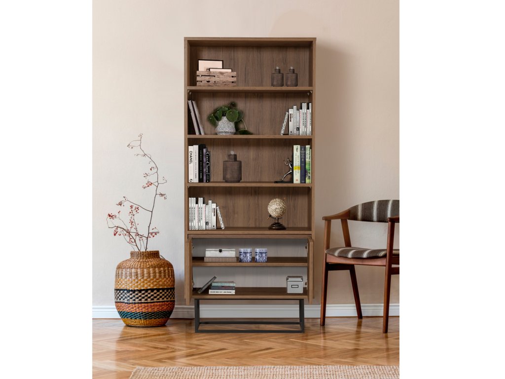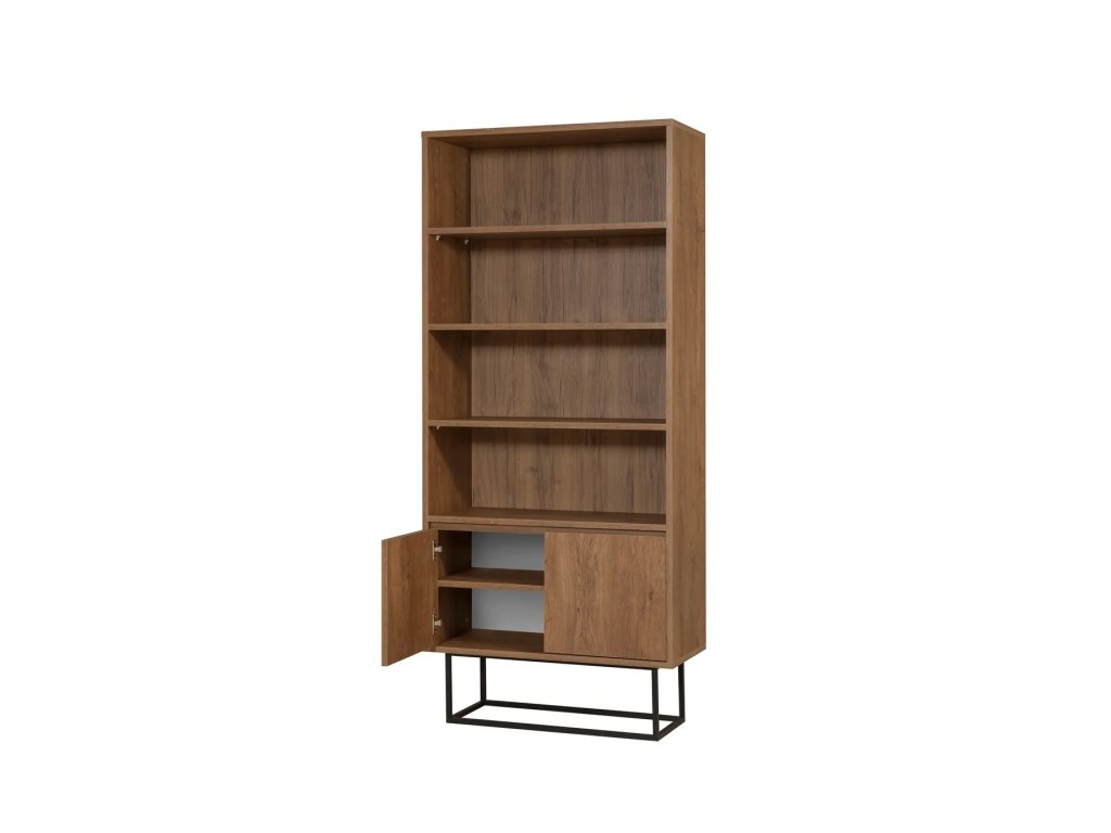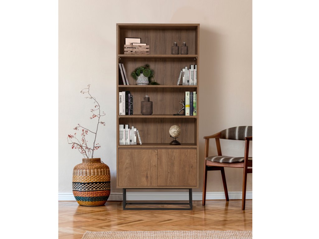 Knihovna APE je ideální volbou pro všechny, kteří hledají spojení praktického úložného prostoru a stylového industriálního designu. S kombinací ořechového dekoru a černých prvků dodá vašemu obývacímu pokoji moderní a sofistikovaný vzhled.