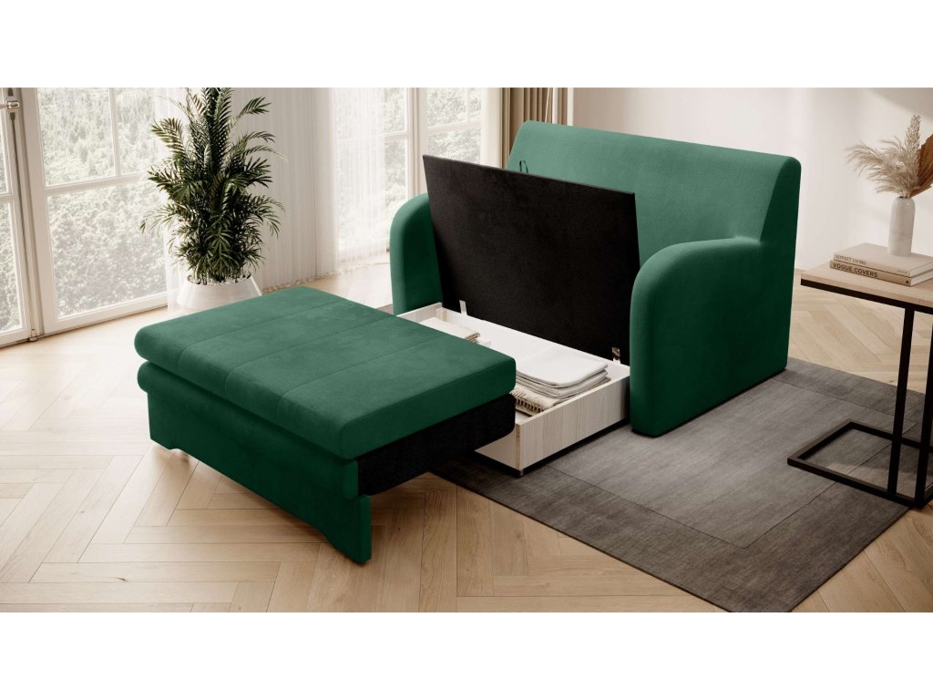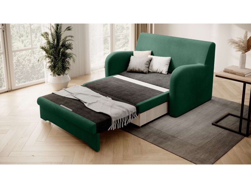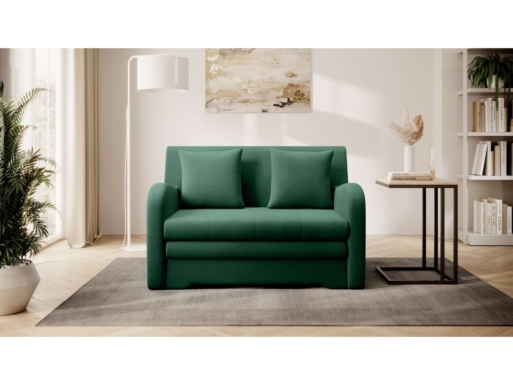 Stylová a adaptabilní. Zelená rozkládací pohovka ARIBA je navržena tak, aby se hodila do moderního i tradičního interiéru.