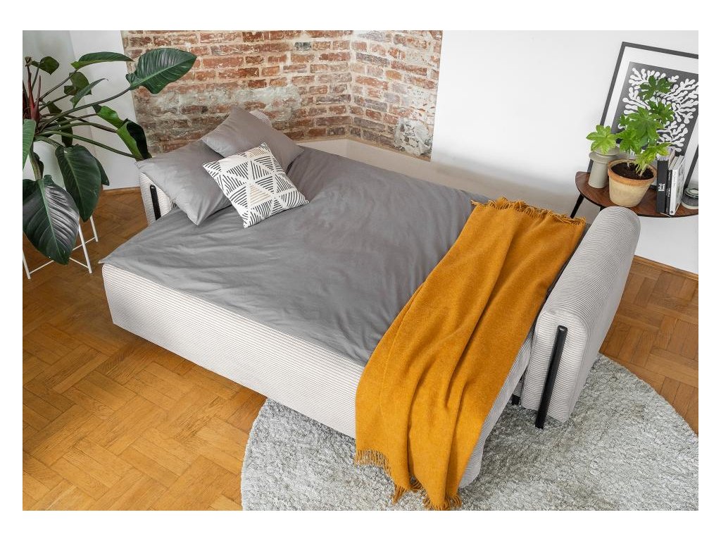 Úložný prostor a snadná údržba. Kromě své funkčnosti rozkládací pohovka ARKADIA poskytuje šikovný úložný prostor skrytý pod sedákem, ideální pro skladování ložního prádla nebo sezónních dek. Čalounění a vyplnění z HR PUR pěny zaručuje, že rozkládací pohovka zůstane pohodlná a atraktivní i při každodenním používání.