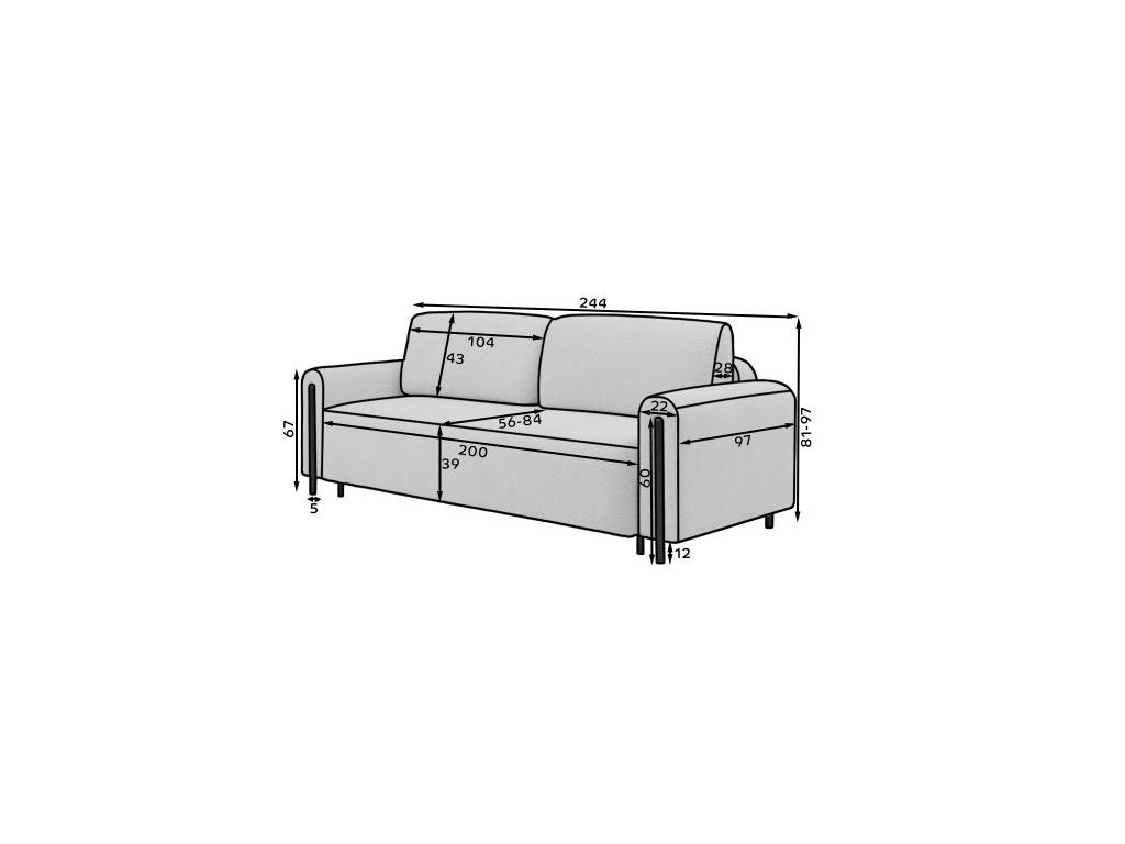 Komfortní sezení pro tři osoby a snadné rozložení na lůžko. Rozkládací pohovka ARKADIA nabízí pohodlné sezení pro tři osoby s nosností 250 kg a snadno se transformuje na prostorné lůžko, ideální pro příležitostné hosty. Rozměry šířka 244 cm, hloubka 97 cm, výška 97 cm zajišťují, že rozkládací pohovka bude dominantním a praktickým prvkem vašeho obývacího pokoje.