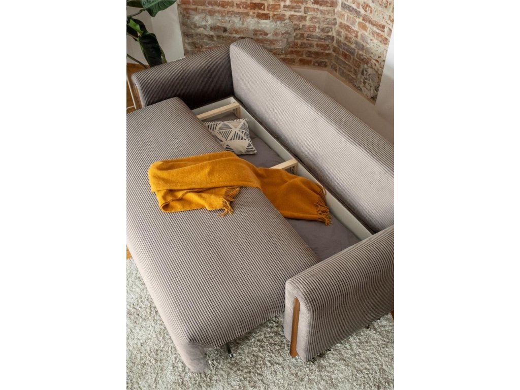 Rozkládací pohovka ARKADIA – stylový a multifunkční nábytek pro váš domov. Hnedá barva potahu a nohy v barvě dub Artisan, nejlépe doplní vaše interiéry, a transformujte každý prostor s touto elegantní rozkládací pohovkou ARKADIA.