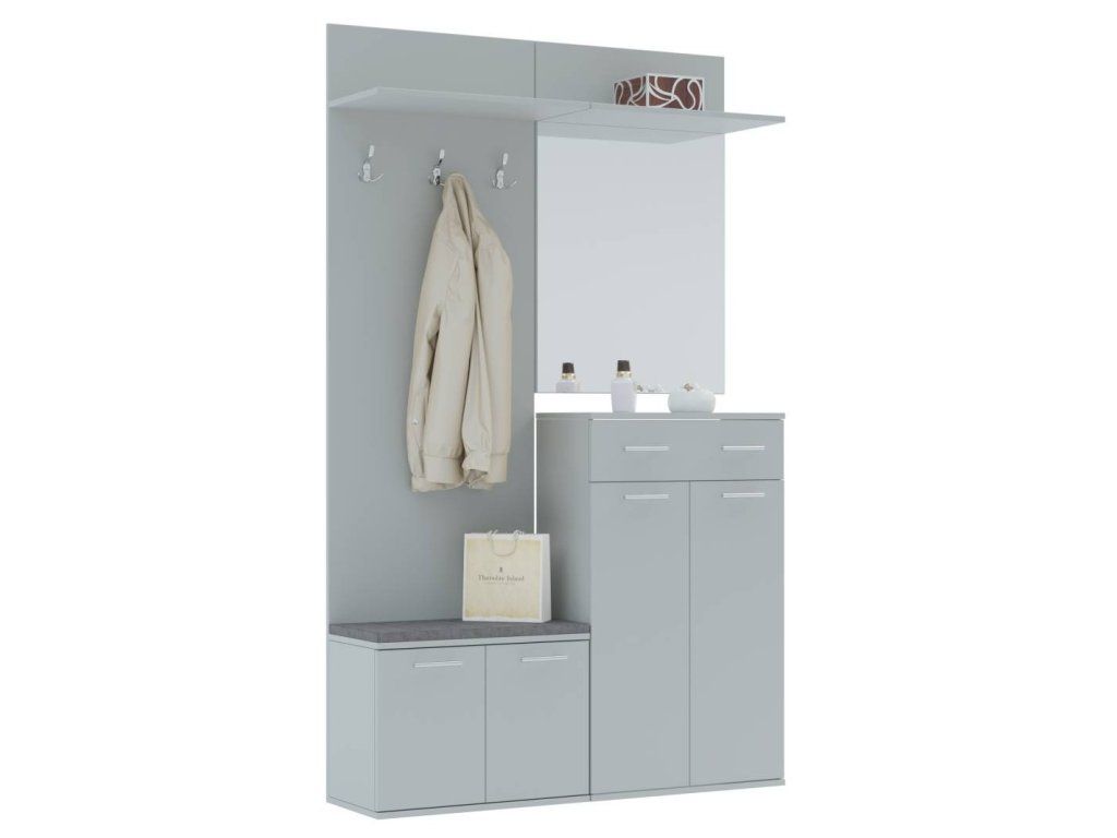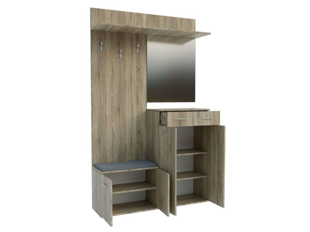 Předsíň ARMADIO v moderním barevném provedení. Součástí předsíně je fasetové zrcadlo, věšák, skříňky na boty, polštářek. Nábytek je vyroben z lehceudržitelné LTD desky.
