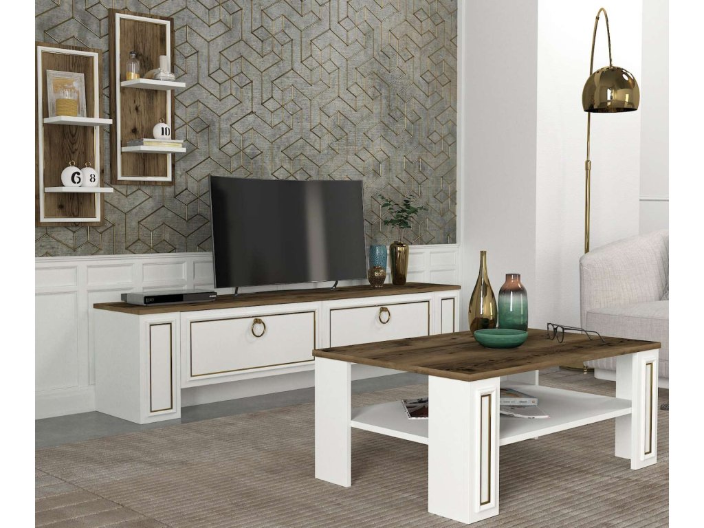 Představujeme ARYA, konferenční stolek, který přináší do vašeho obývacího pokoje eleganci a funkčnost. Tento stylový nábytek v kombinaci bílé a ořechové barvy je navržen tak, aby poskytoval praktické a estetické řešení pro vaše potřeby.