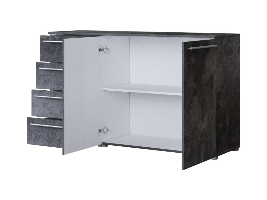Stylová a praktická komoda ASIA je ideálním doplňkem do ložnice nebo obývacího pokoje. Nabízí dostatek úložného prostoru díky kombinaci 4 zásuvek a 2 uzavřených skříněk. Moderní design doplňuje RGB podsvícení, které vytváří jedinečnou atmosféru.
