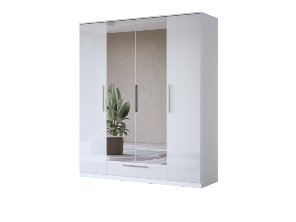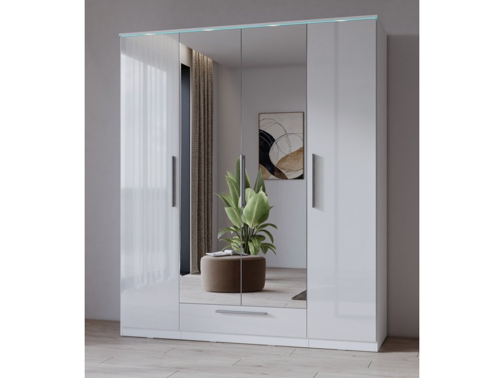 ASIA šatní skříň s podsvícením 4D1S, bílá/bílé sklo