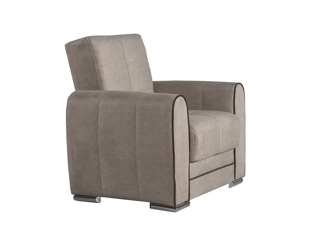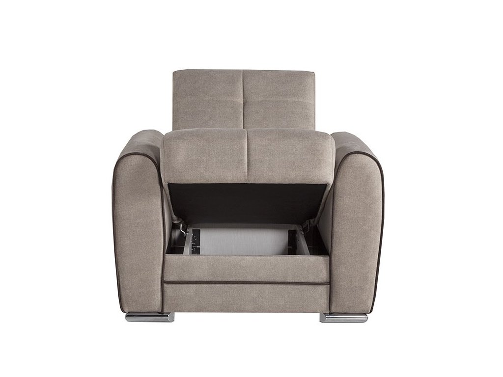 Pohodlné rozkládací křesloASLAN s funkcí spaní a úložným prostorem bude praktickým kouskem do každého interiéru. Křeslo je ideální pro každodenní odpočinek. Za komfort sezení a spaní jsou zodpovědné pružiny Bonnell a vysoce kvalitní PUR pěna. ÚLOŽNÝ PROSTOR pod sedákem poskytuje dostatek prostoru pro uskladnění ložního prádla či přikrývek. Křeslo je čalouněno kvalitní potahovou látkou v béžové barvě a stojí na chromových nožičkách.