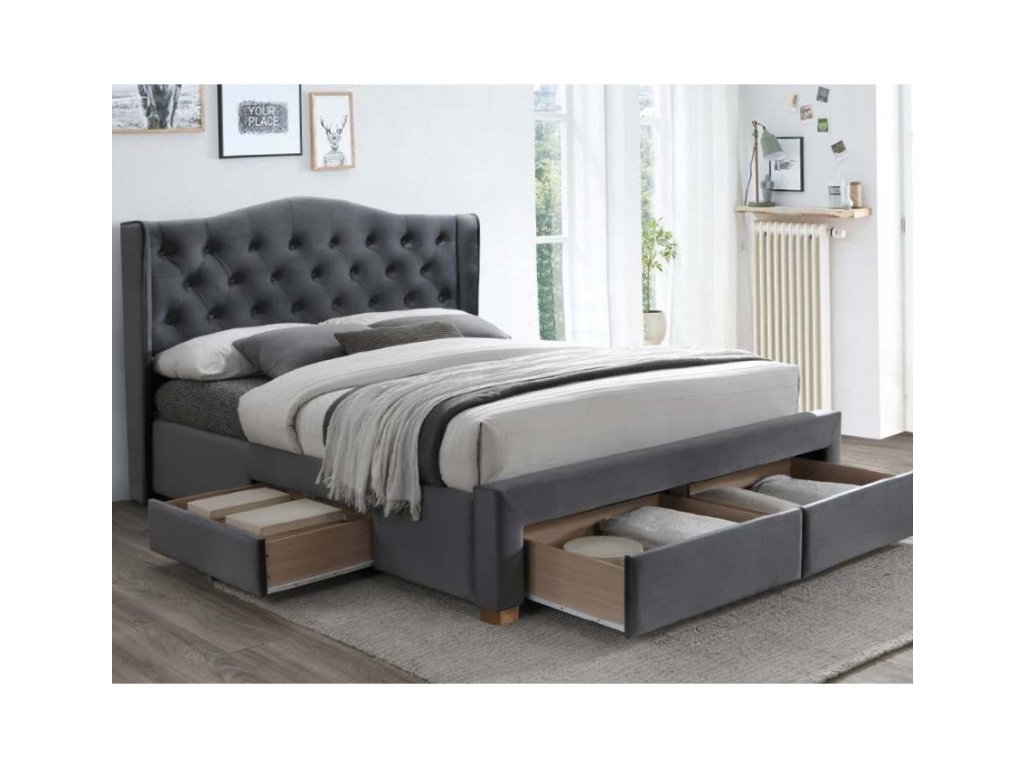 Stylová a elegantní postel ASPENA II VELVET, patří mezi moderní manželské postele. Je vhodná do menších ložnic. Nabízí spací plochu 160 x 200 cm. Výrazným designovým prvkem této postele je její čelo, které také ochrání vaši stěnu před oděrem. Postel je čalouněná. Použitá je kvalitní látka Bluvel 14 v šedé barvě. Disponuje praktickým úložným prostorem - 4 zásuvky pod postelí. Matrace není v ceně postele. Je třeba si jej dokoupit o velikosti 160 x 200 cm, resp. 80 x 200 cm. Nosnost postele je 250 kg Celkové rozměry postele (š,v,d): 178 x 124 x 219 cm. Dodáváme v demontovaném stavu.Doplňkové parametry