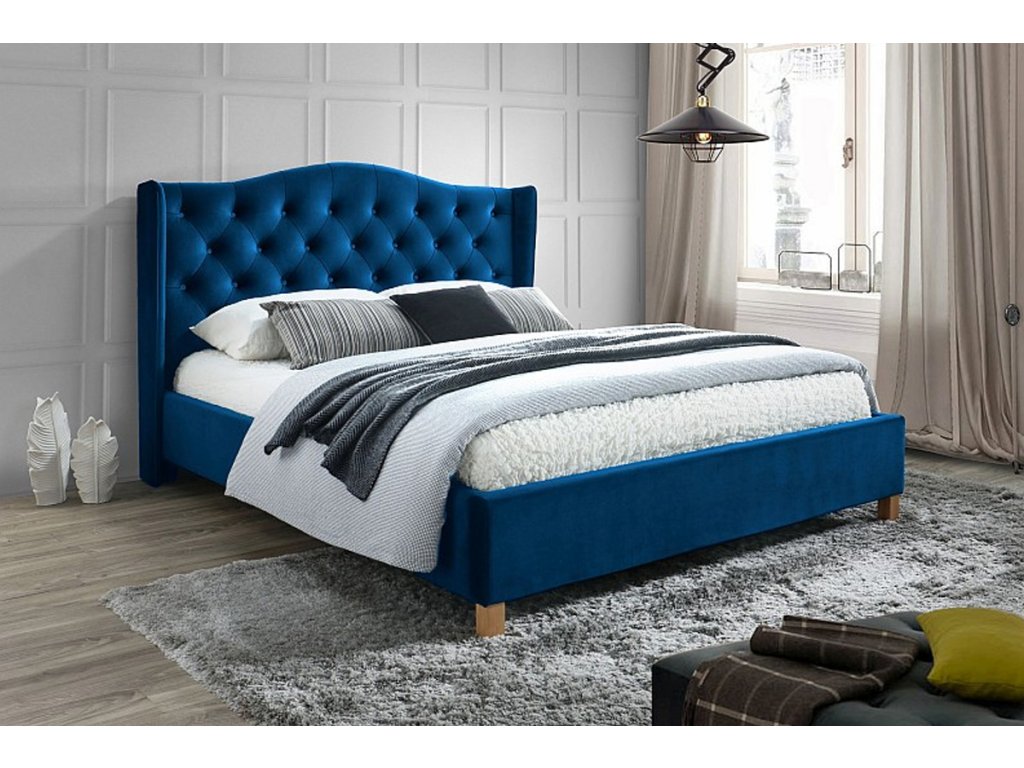 ASPENA VELVET čalouněná postel 160, tmavě modrý samet