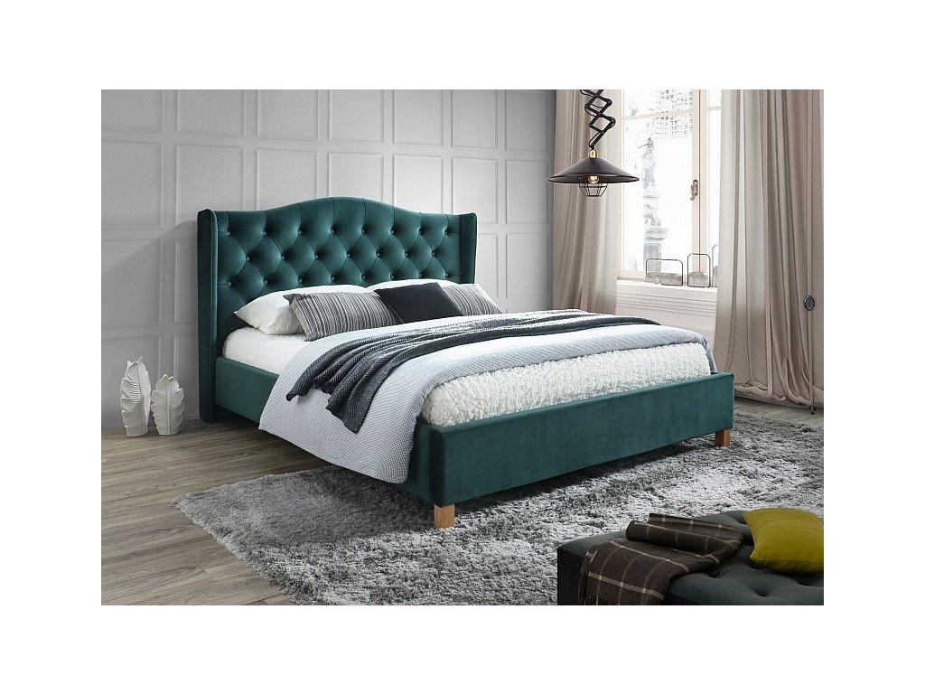 ASPENA VELVET manželská postel 180x200cm, zelená, dub