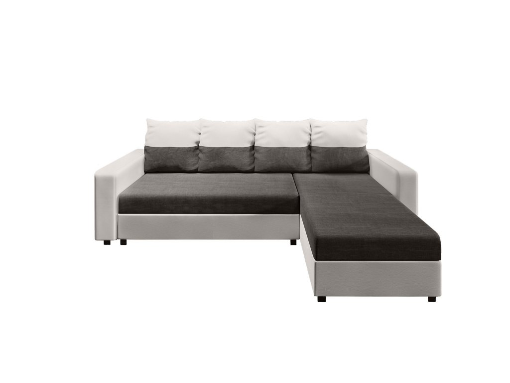 Moderní rozkládací sedačka menších rozměrů ASTANIA L v potahovém provedení SAWANA 5/DOLARO 511 v pravém rohu má opěradlo tvořené čtyřmi dvoubarevnými polštáři, které mají z jedné strany vodorovné pruhy a ze strany druhé šikmé pruhy. Můžete si tak otočením polštářů měnit vzhled sedačky. Každý polštář má praktické zapínání na zip.