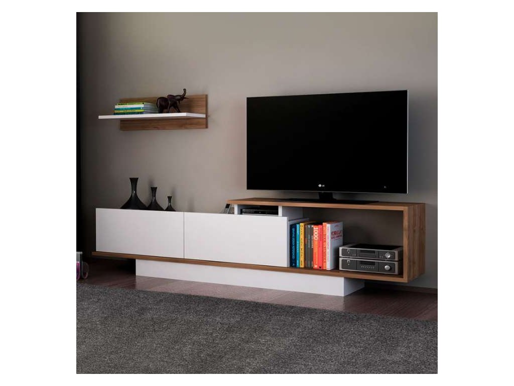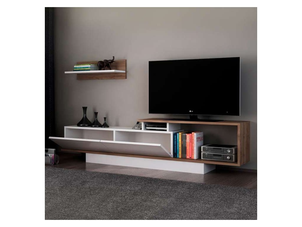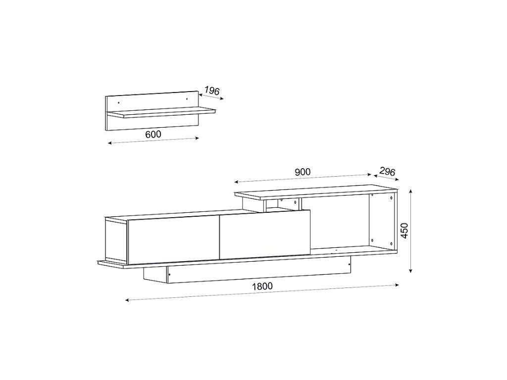 - Rozměry: TV stolek (180 x 29.6 x 45 cm) a nástěnná police (60 x 19.6 x 19.6 cm) poskytují dostatek prostoru pro umístění vaší televize a dalších dekorací nebo multimediálních zařízení.