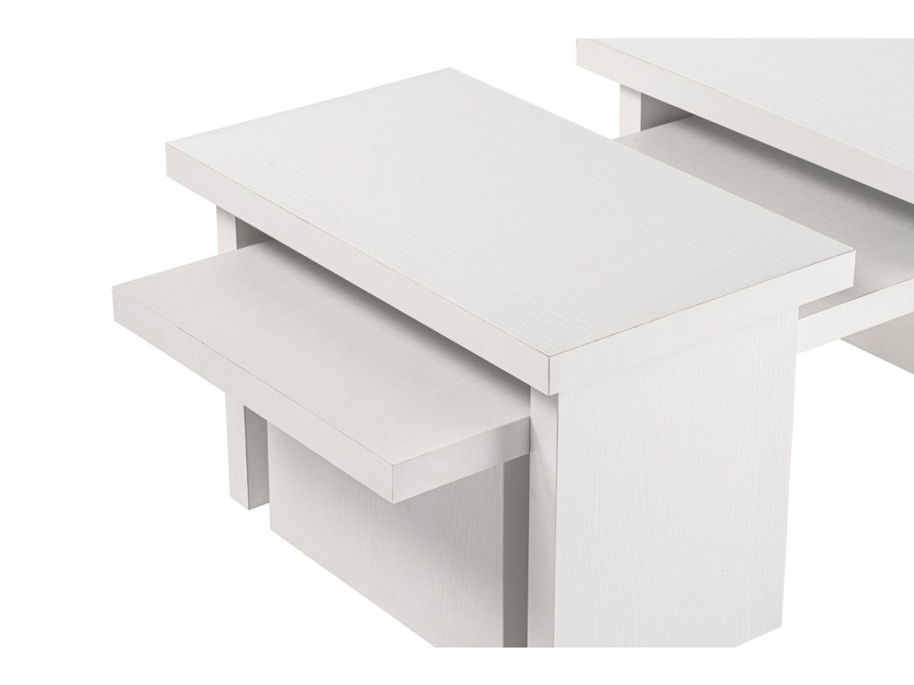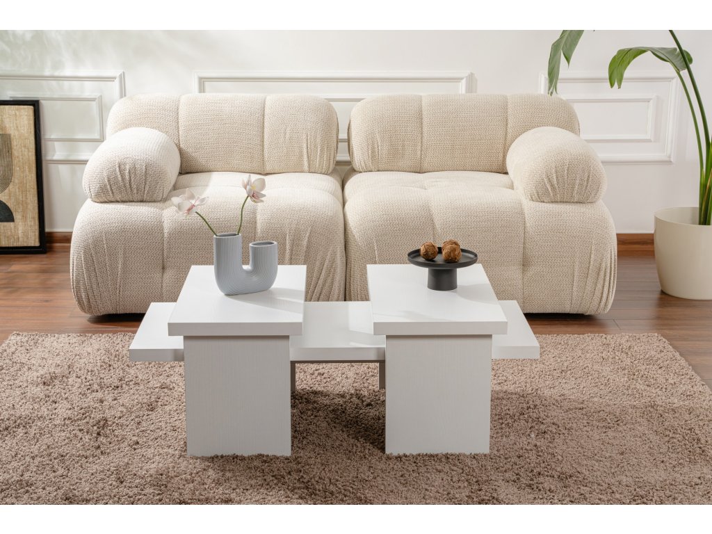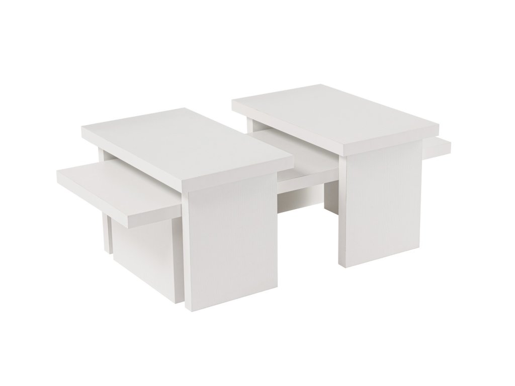 Pozdvihněte svůj obytný prostor s naší úžasnou sadou konferenčních stolků, vyrobenou ze 100% dřevotřísky s melaminovým povlakem pro odolnost a styl. Elegantní design a dřevobílá barva okamžitě dodají každé místnosti nádech elegance a učiní z ní perfektní ústřední prvek vašeho domova.