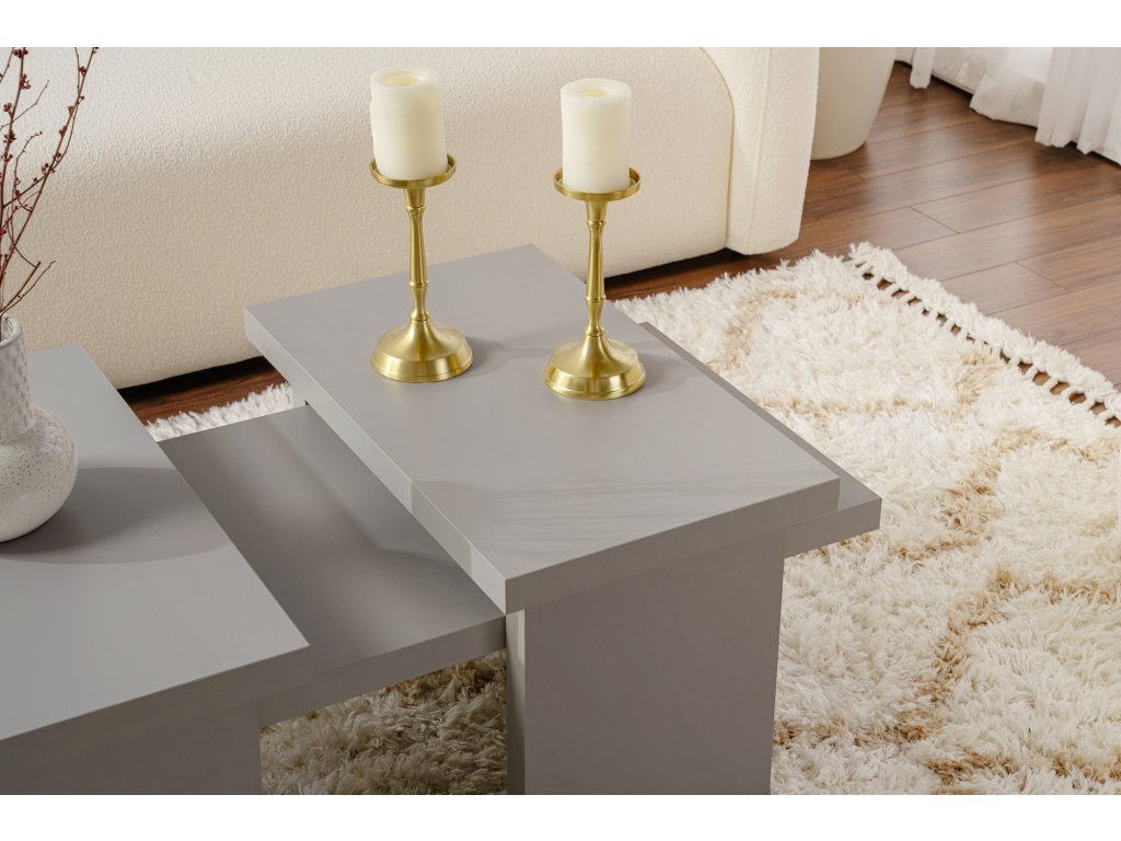 Šedá barva této sady konferenčních stolků dodává každé místnosti nádech sofistikovanosti a modernity. Neutrální odstín je všestranný a snadno se kombinuje s jinými barvami, takže je perfektní volbou pro jakýkoli domácí dekor.