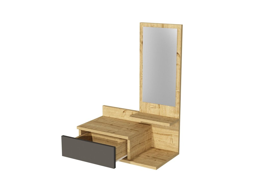 Stolek AUSTIN je navržen pro moderní předsíně, kde je klíčové efektivní využití prostoru a estetika. Tento závěsný odkládací stolek nabízí praktické vybavení v podobě zásuvky, odkládací police a integrovaného zrcadla, které vám usnadní každodenní organizaci a přidá styl vašemu interiéru.