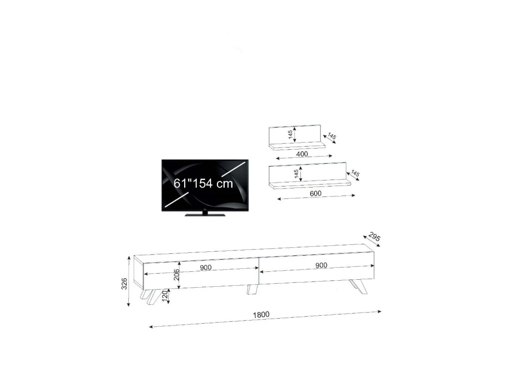Rozměry TV stolku: (š/v/h) 180 x 32,6 x 31 ,3 cm (další rozměry v nákresu)