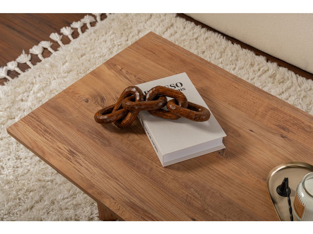 Tento konferenční stolek, vyrobený s precizností a důrazem na detail, je nejen stylový, ale také vyroben tak, aby vydržel. 18mm tloušťka dřevotřísky s melaminovým povlakem zajišťuje robustnost a stabilitu, což z ní činí spolehlivý kus nábytku pro váš domov.