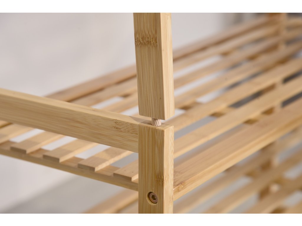 Bambusová skříňka na boty BAMBINO je praktický víceúčelový nábytek, který najde využití hned několikrát. Je ideální do předsíně jako moderní otevřený botník na odkládání minimálně 9 párů bot. Tento bambusový regál BAMBINO je ale také vhodný i jako koupelnový regál nebo také jako přírodní bambusový regál do jakékoli jiné místnosti, který Vám umožní přehledné a chytré uspořádání Vašich knih, dekorací či vzpomínkových předmětů.Díky odolnému bambusovému materiálu, lakované úpravě a díky kvalitnímu zpracování je odolný i vůči vlhkosti a také jednoduchý na údržbu.
