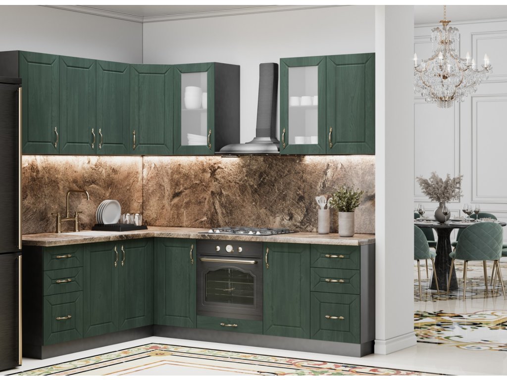 BARDIS rohová vintage kuchyňská linka z MDF, zelená/antracit