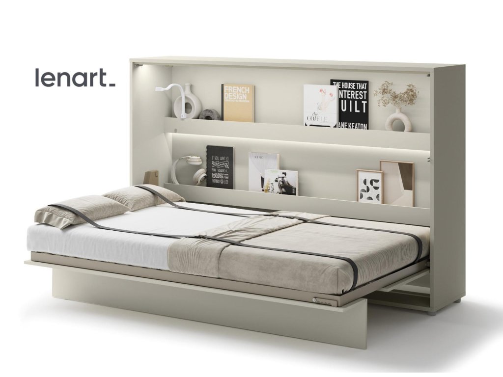Široká výklopná postel 120 kašmír (béžová s nádechem šedé). Rozměry viz obrázek. Se sklápěcí postelí Vás už nebude trápit malý prostor Vaší domácnosti. Díky stabilní konstrukci zaručuje pohodlný odpočinek. Pneumatický mechanismus sklápění postele zajistí bezpečné otevírání a je doplněn SOFT CLOSE systémem tichého zavírání. Tento výjimečný systém Vám umožní manipulaci pouze jedním prstem. Když je postel sklopená, vypadá jako běžná skříň. Vyklopením se vytáhne celá šířka postele. Při lozložení postele má hloubku 148 cm. Uvnitř skříně jsou praktické police na knížky nebo dekorační předměty, vše máte na dosah ruky. Maximální zatížení polic je 5 kg. Rám je nutno přišroubovat ke zdi, nosnost postele je 150 kg. Rošt postele je v ceně, matrace není součástí, je potřeba ji dokoupit. Doporučujeme velikost 120 x 200 x výšku do 18 cm. Po sklopení postele vzniká prostor pod postelí o výšce 24,9 cm. Nábytek je vyroben z kvalitního lamina s ABS hranou. Lamino je odolné proti poškrábání, poškození, vlhkosti a vysokým teplotám. Postel nabízíme v několika velikostech a barevných provedeních. K posteli je možné dokoupit LED osvětlení. Dodáváme v demontovaném stavu. Můžete si prohlédnout prezentační video, klikněte ZDE.