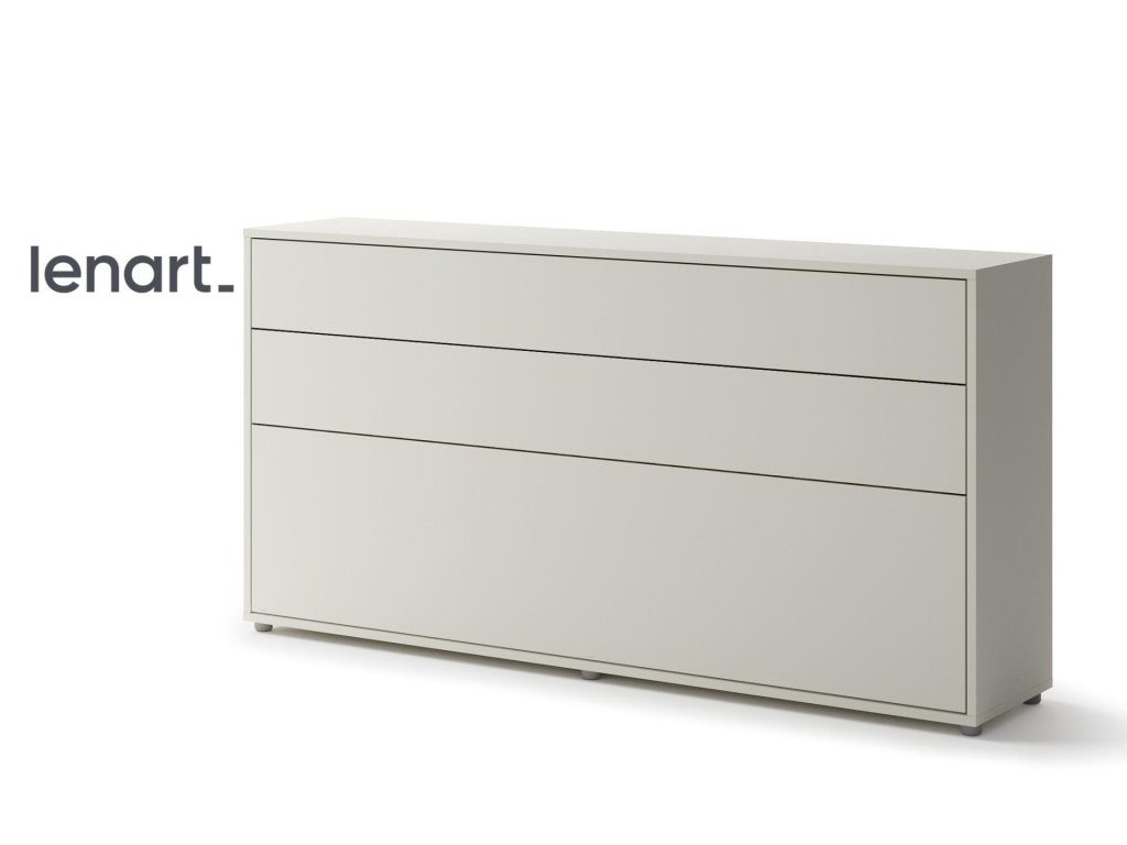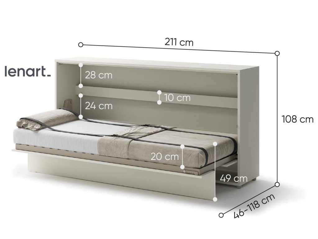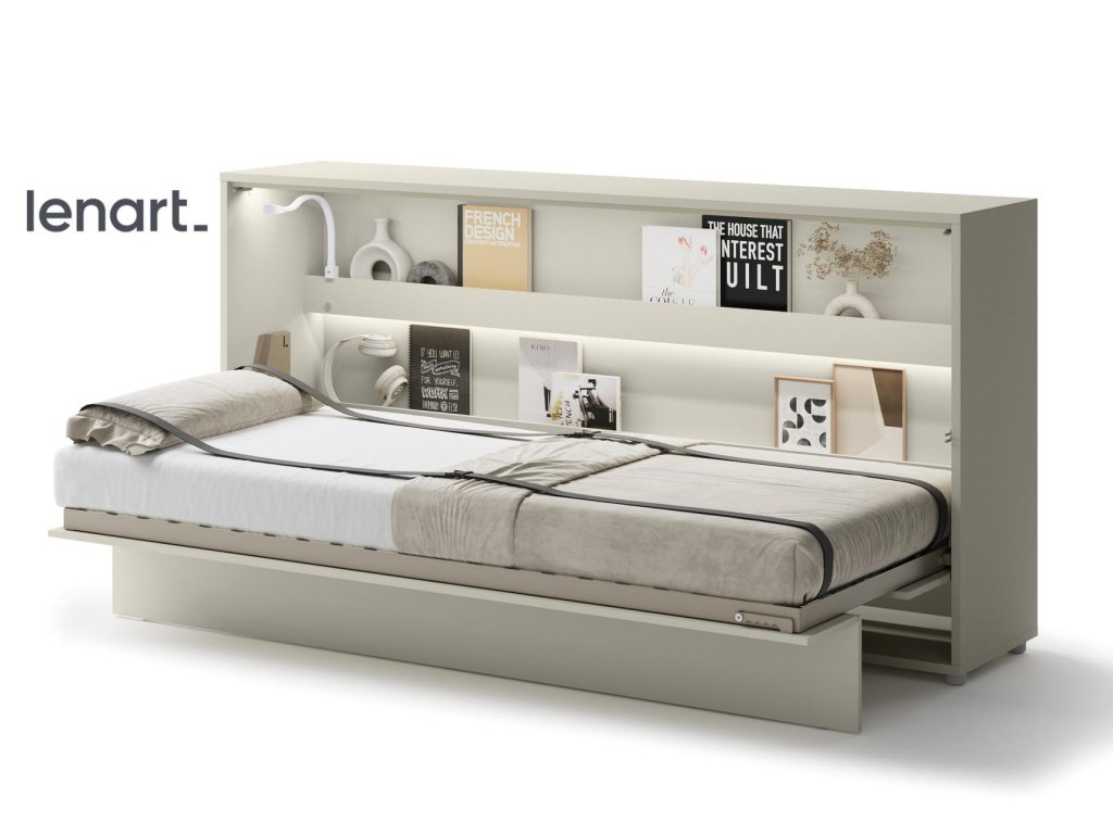 Široká výklopná postel 90 kašmír (béžová s nádechem šedé). Rozměry viz obrázek. Se sklápěcí postelí Vás už nebude trápit malý prostor Vaší domácnosti. Díky stabilní konstrukci zaručuje pohodlný odpočinek. Pneumatický mechanismus sklápění postele zajistí bezpečné otevírání a je doplněn SOFT CLOSE systémem tichého zavírání. Tento výjimečný systém Vám umožní manipulaci pouze jedním prstem. Když je postel sklopená, vypadá jako běžná skříň. Vyklopením se vytáhne celá šířka postele. Při lozložení postele má hloubku 118 cm. Uvnitř skříně jsou praktické police na knížky nebo dekorační předměty, vše máte na dosah ruky. Maximální zatížení polic je 5 kg. Rám je nutno přišroubovat ke zdi, nosnost postele je 100 kg. Rošt postele je v ceně, matrace není součástí, je potřeba ji dokoupit. Doporučujeme velikost 90 x 200 x výšku do 18 cm. Po sklopení postele vzniká prostor pod postelí o výšce 24,9 cm. Nábytek je vyroben z kvalitního lamina s ABS hranou. Lamino je odolné proti poškrábání, poškození, vlhkosti a vysokým teplotám. Postel nabízíme v několika velikostech a barevných provedeních. K posteli je možné dokoupit LED osvětlení. Dodáváme v demontovaném stavu. Můžete si prohlédnout prezentační video, klikněte ZDE.