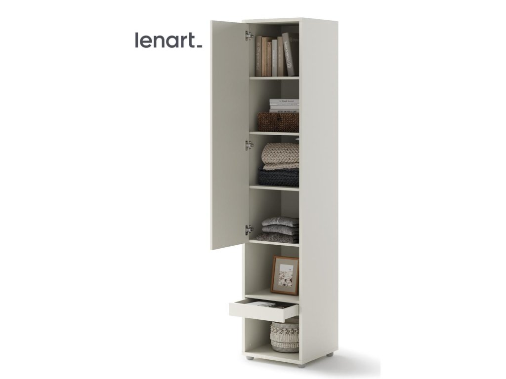Policová skříň se zásuvkou barva kašmír (béžová s nádechem šedé). Rozměry viz obrázek. Nábytek je vyroben z kvalitního lamina s ABS hranou. Lamino je odolné proti poškrábání, poškození, vlhkosti a vysokým teplotám. Dodáváme v demontovaném stavuDoplňkové parametry