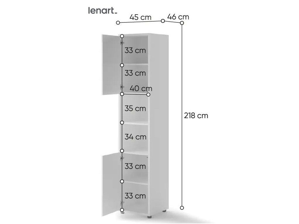 Policová skříň se dvěma dvířky bílá lesk/bílá mat. Rozměry viz obrázek. Nábytek je vyroben z kvalitního lamina s ABS hranou. Lamino je odolné proti poškrábání, poškození, vlhkosti a vysokým teplotám. Dodáváme v demontovaném stavu.Doplňkové parametry