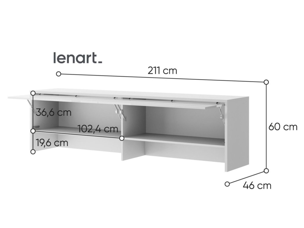 Nádstavec k výklopné posteli široká 140 bílá lesk/bílá mat. Nádstavec má 2 dvířka. Rozměry viz obrázek. Nábytek je vyroben z kvalitního lamina s ABS hranou. Lamino je odolné proti poškrábání, poškození, vlhkosti a vysokým teplotám. Dodáváme v demontovaném stavu.