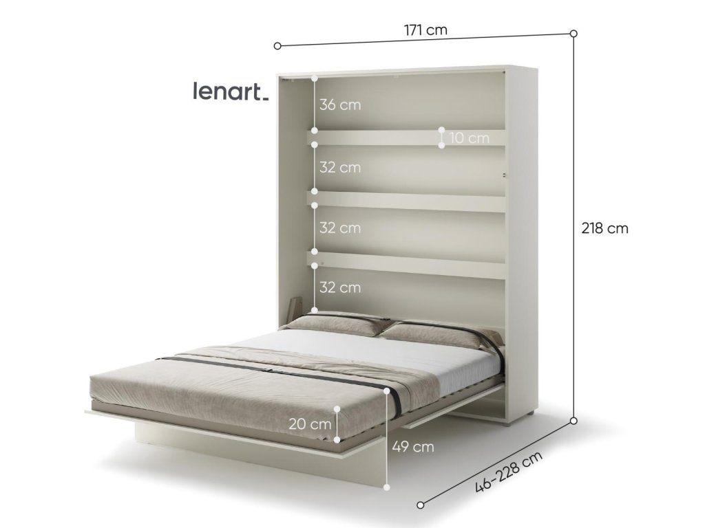 Vysoká výklopná postel 160 kašmír (béžová s nádechem šedé). Rozměry viz obrázek. Se sklápěcí postelí Vás už nebude trápit malý prostor Vaší domácnosti. Díky stabilní konstrukci zaručuje pohodlný odpočinek. Pneumatický mechanismus sklápění postele zajistí bezpečné otevírání a je doplněn SOFT CLOSE systémem tichého zavírání. Tento výjimečný systém Vám umožní manipulaci pouze jedním prstem. Když je postel sklopená, vypadá jako běžná skříň. Vyklopením se vytáhne celá délka postele. Při lozložení postele má hloubku 228 cm. Uvnitř skříně jsou praktické police na knížky nebo dekorační předměty, vše máte na dosah ruky. Rám je nutno přišroubovat ke zdi, nosnost postele je 200 kg. Rošt postele je v ceně, matrace není součástí, je potřeba ji dokoupit. Doporučujeme velikost 160 x 200 x výšku do 18 cm. Po sklopení postele vzniká prostor pod postelí o výšce 20,4 cm. Nábytek je vyroben z kvalitního lamina s ABS hranou. Lamino je odolné proti poškrábání, poškození, vlhkosti a vysokým teplotám. Postel nabízíme v několika velikostech a barevných provedeních. K posteli je možné dokoupit LED osvětlení. Dodáváme v demontovaném stavu. Můžete si prohlédnout prezentační video, klikněte ZDE.