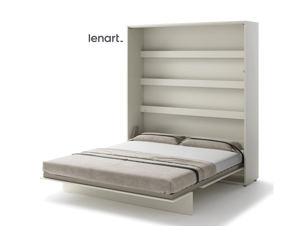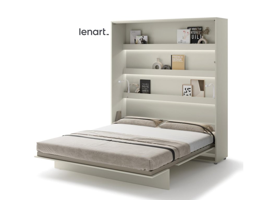 Vysoká výklopná postel 180 kašmír (béžová s nádechem šedé). Rozměry viz obrázek. Se sklápěcí postelí Vás už nebude trápit malý prostor Vaší domácnosti. Díky stabilní konstrukci zaručuje pohodlný odpočinek. Pneumatický mechanismus sklápění postele zajistí bezpečné otevírání a je doplněn SOFT CLOSE systémem tichého zavírání. Tento výjimečný systém Vám umožní manipulaci pouze jedním prstem. Když je postel sklopená, vypadá jako běžná skříň. Vyklopením se vytáhne celá délka postele. Při lozložení postele má hloubku 228 cm. Uvnitř skříně jsou praktické police na knížky nebo dekorační předměty, vše máte na dosah ruky. Maximální zatížení polic je 5 kg. Rám je nutno přišroubovat ke zdi, nosnost postele je 200 kg. Rošt postele je v ceně, matrace není součástí, je potřeba ji dokoupit. Doporučujeme velikost 180 x 200 x výšku do 18 cm. Po sklopení postele vzniká prostor pod postelí o výšce 24,9 cm. Nábytek je vyroben z kvalitního lamina s ABS hranou. Lamino je odolné proti poškrábání, poškození, vlhkosti a vysokým teplotám. Postel nabízíme v několika velikostech a barevných provedeních. K posteli je možné dokoupit LED osvětlení. Dodáváme v demontovaném stavu. Můžete si prohlédnout prezentační video, klikněte ZDE.
