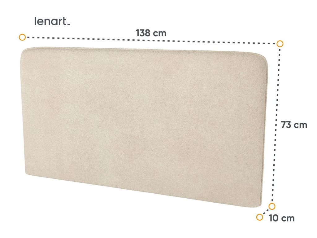 Komfortní polstrovaný záhlavník k vysoké posteli široké 140 cm Bed Concept pro vetší pohodlí. Rozměry viz obrázek. Vyroben je z pevné polyuretanové pěny (PUR) potažený látkou 100% PES PIU 03 v barvě béžová boucle. V nabídce máme i jiné barevné provedení.