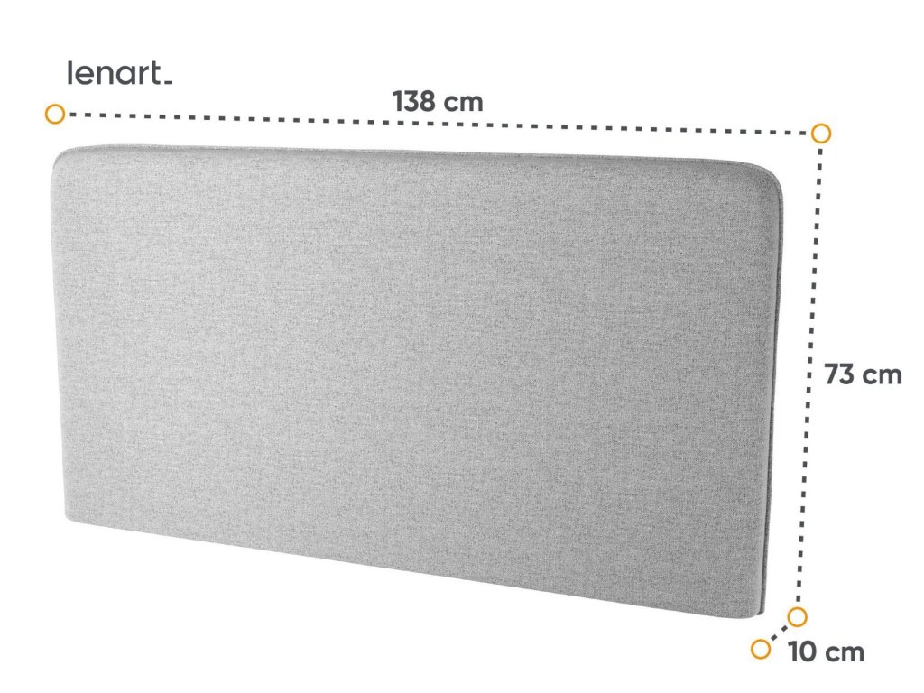 Komfortní polstrovaný záhlavník k vysoké posteli široké 140 cm Bed Concept pro vetší pohodlí. Rozměry viz obrázek. Vyroben je z pevné polyuretanové pěny (PUR) potažený látkou 100% PES ART-82626 v barvě světle šedá. V nabídce máme i jiné barevné provedení.
