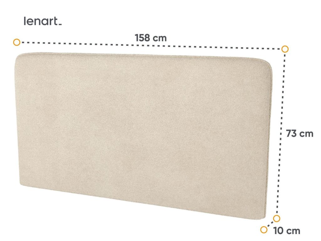 Komfortní polstrovaný záhlavník k vysoké posteli široké 160 cm Bed Concept pro vetší pohodlí. Rozměry viz obrázek. Vyroben je z pevné polyuretanové pěny (PUR) potažený látkou 100% PES PIU 03 v barvě béžová boucle. V nabídce máme i jiné barevné provedení.