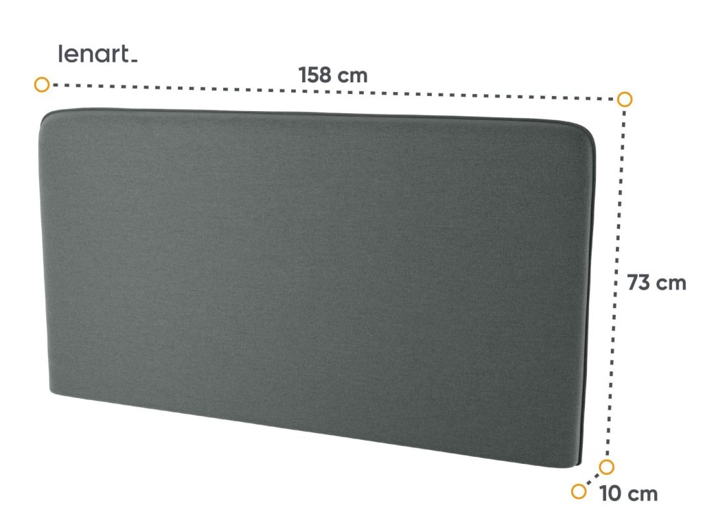 Komfortní polstrovaný záhlavník k vysoké posteli široké 160 cm Bed Concept pro vetší pohodlí. Rozměry viz obrázek. Vyroben je z pevné polyuretanové pěny (PUR) potažený látkou 100% PES ART-82630 v barvě grafit. V nabídce máme i jiné barevné provedení.
