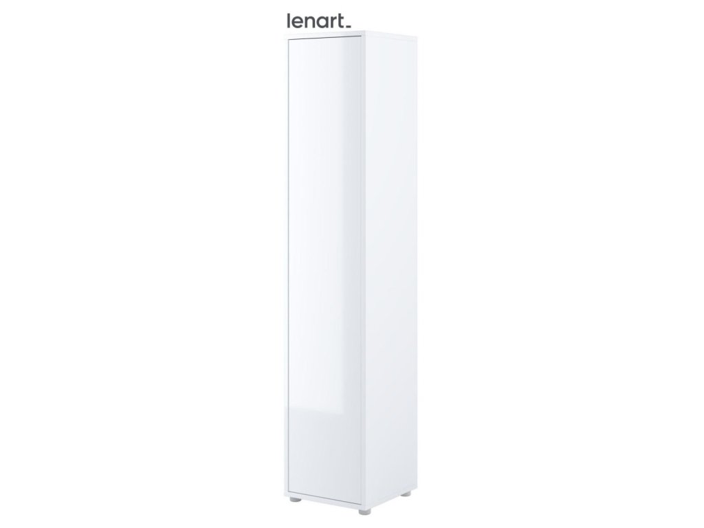 Policová skříň s dvířky bílá lesk/bílá mat. Rozměry a vnitřní prostor viz obrázky. Nábytek je vyroben z kvalitního lamina s ABS hranou. Lamino je odolné proti poškrábání, poškození, vlhkosti a vysokým teplotám. Dodáváme v demontovaném stavu.